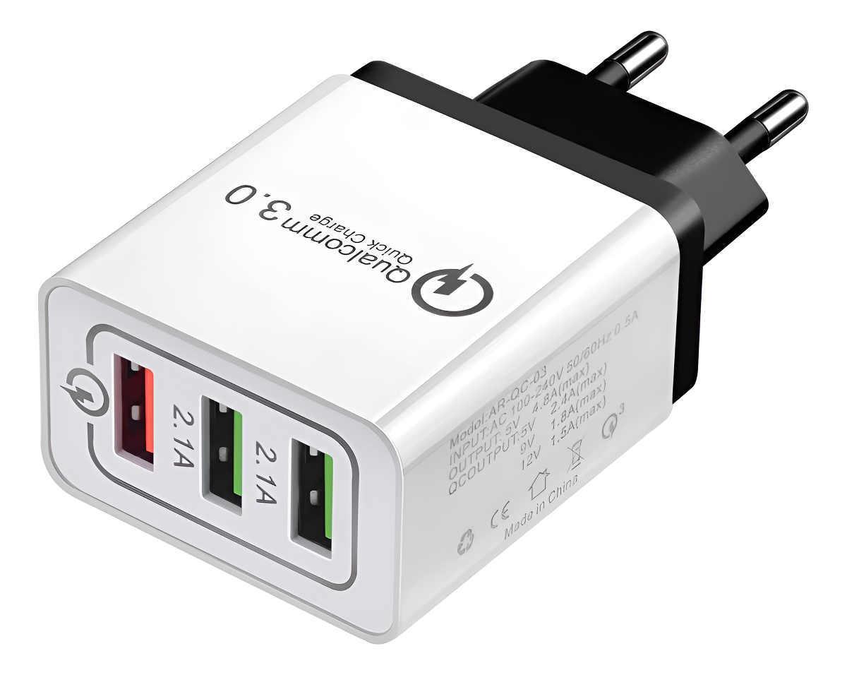 Adaptador Cargador 3 Puertos Usb Carga Rápida Qc 3.0 Fast