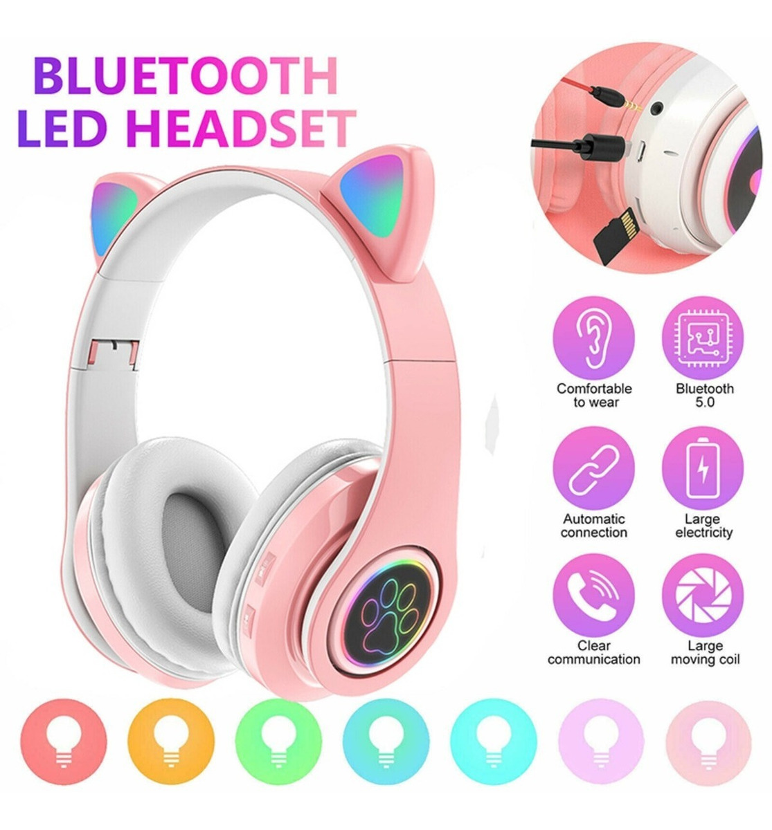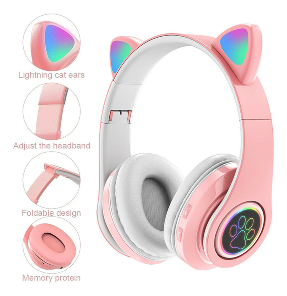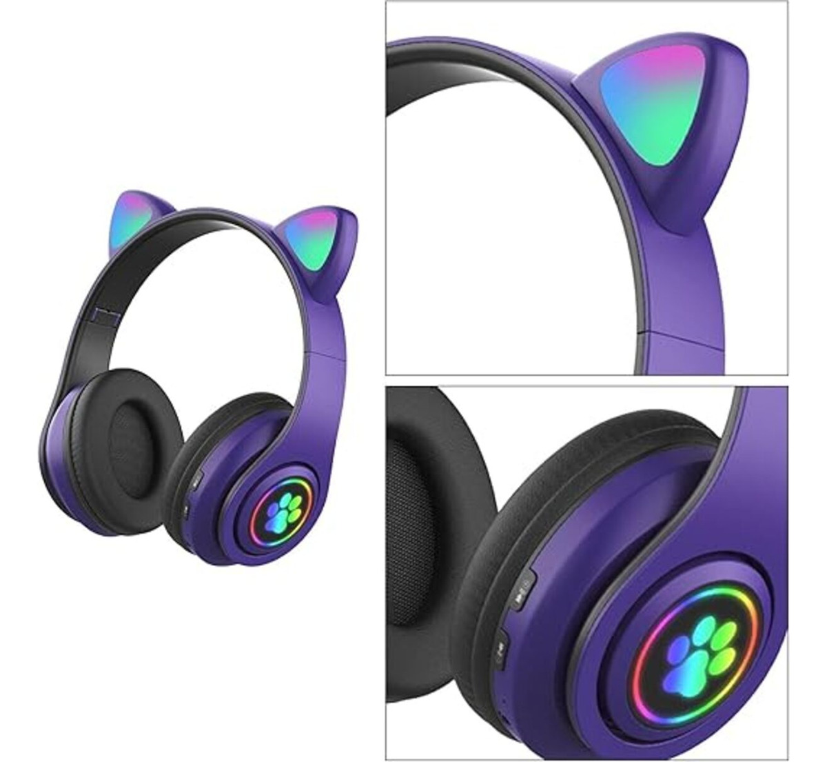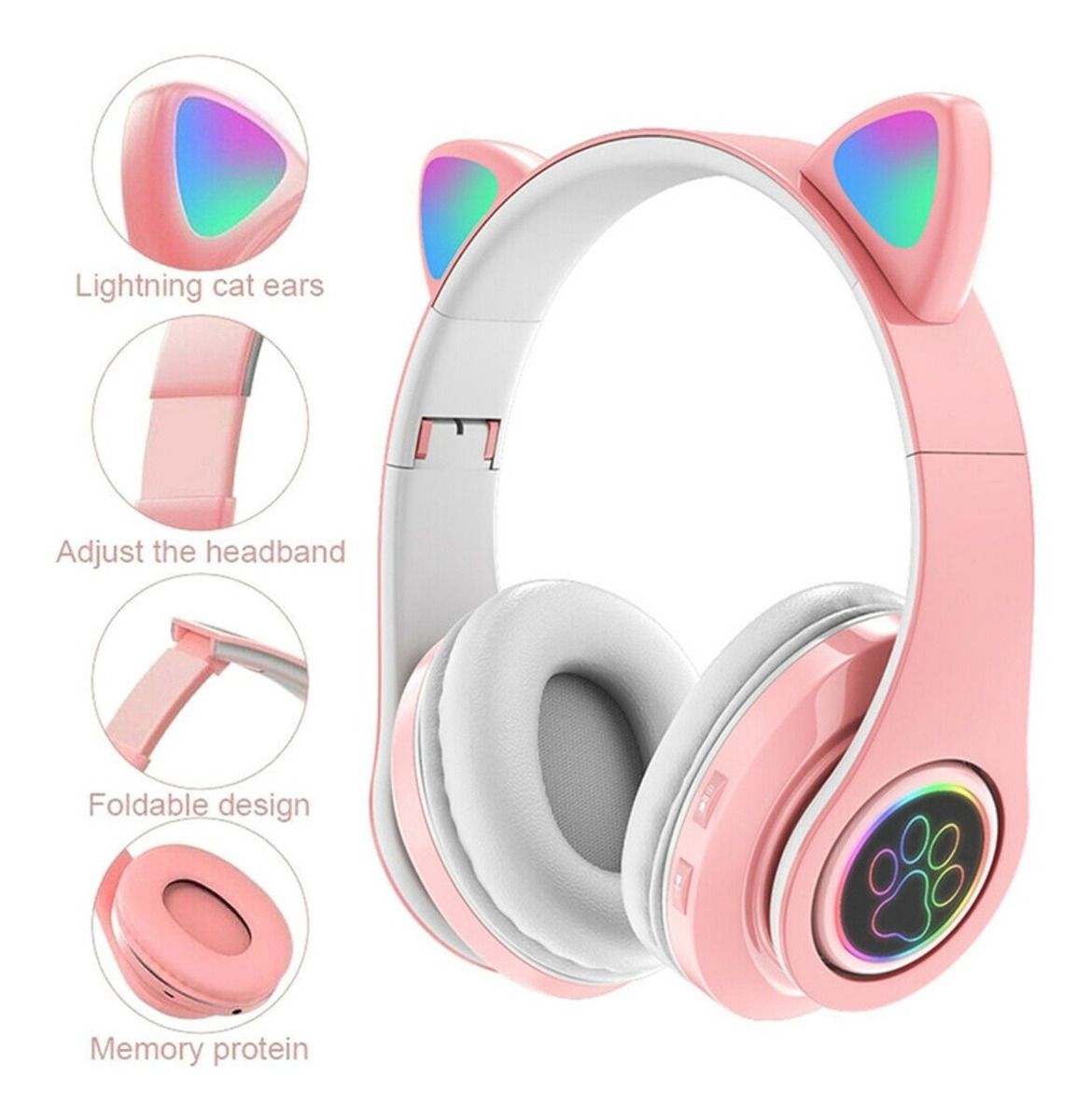 Dale un toque divertido a tu música con estos auriculares Bluetooth con orejas iluminadas. Son plegables, fáciles de transportar y ofrecen múltiples funciones: se cargan mediante cable micro USB (incluido), pueden usarse con cable auxiliar o con tarjeta SD. Equipados con botones para encender/apagar, cambiar canciones y atender llamadas, además de un micrófono integrado para mayor comodidad. Las luces LED en las orejas añaden un estilo único, ideal para niños y adultos. Compatibles con varios dispositivos, son perfectos para disfrutar de música y llamadas con estilo.