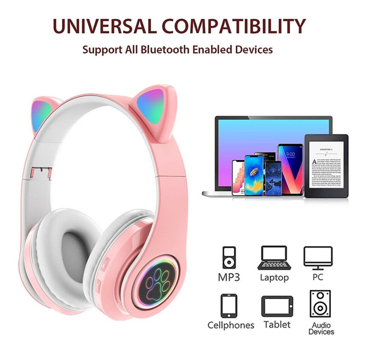 Auriculares Con Orejas Y Luces Divertidos Bluetooth