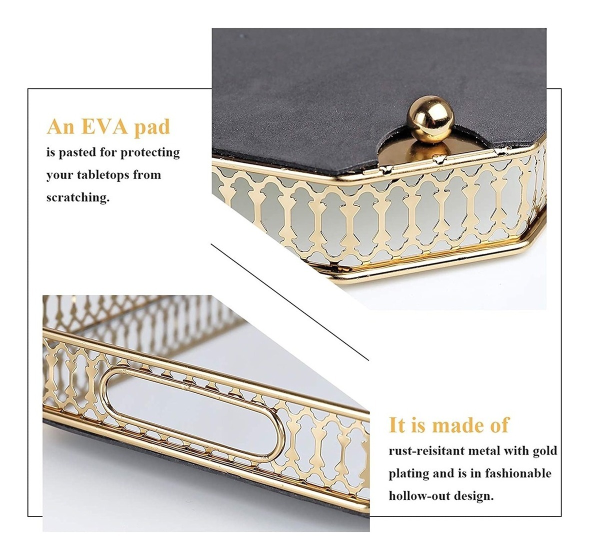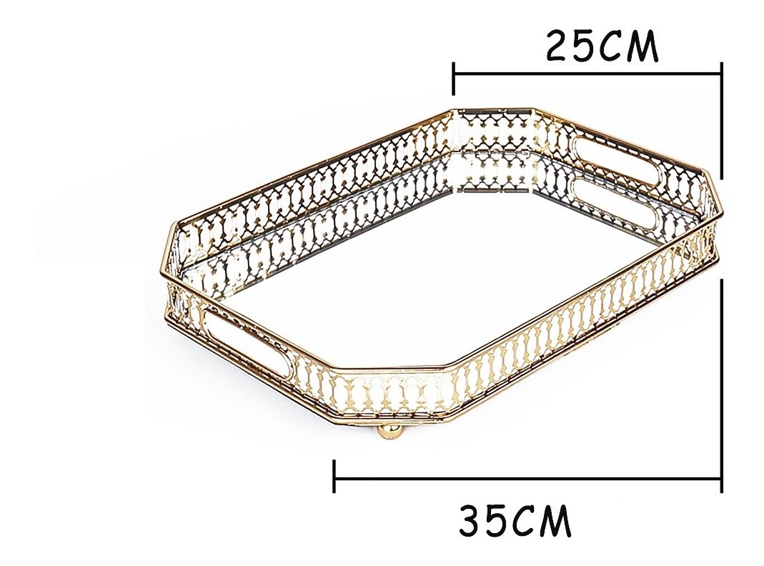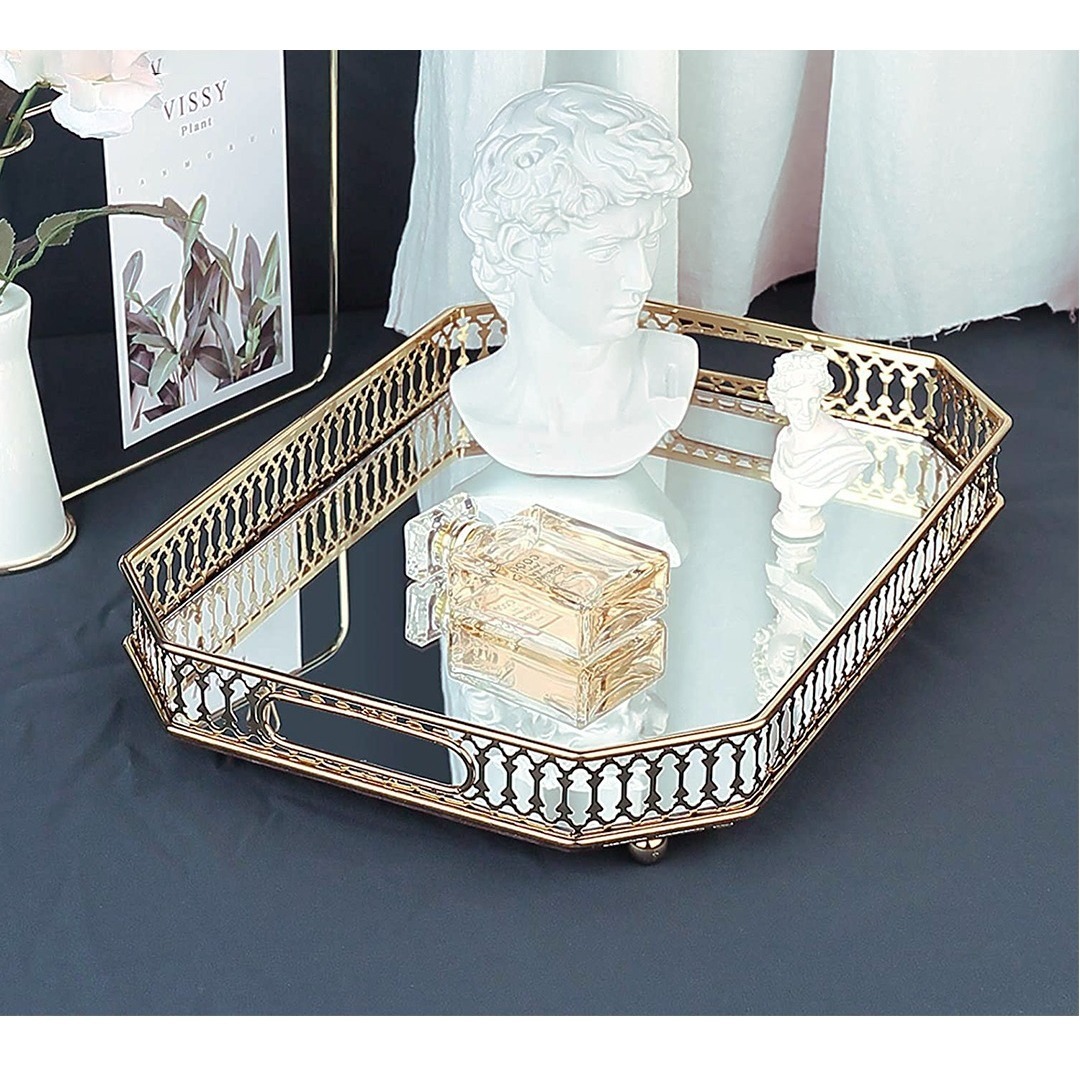 Bandeja con forma octagonal nórdica dorada y espejada. La base original del espejo es ideal para la exhibición del maquillaje de moda. Adopta hierro duradero y vidrio delicado. Muy buena calidad. Adecuado para almacenar frutas, cosméticos, postres, etc.