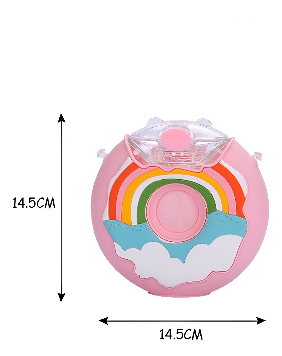 Hidratarse nunca fue tan divertido. Esta botella tipo cantimplora está pensada para que los más pequeños puedan llevar su bebida favorita a todas partes, de forma segura y cómoda. Perfecta para la escuela, campamentos, paseos o tardes de juego.