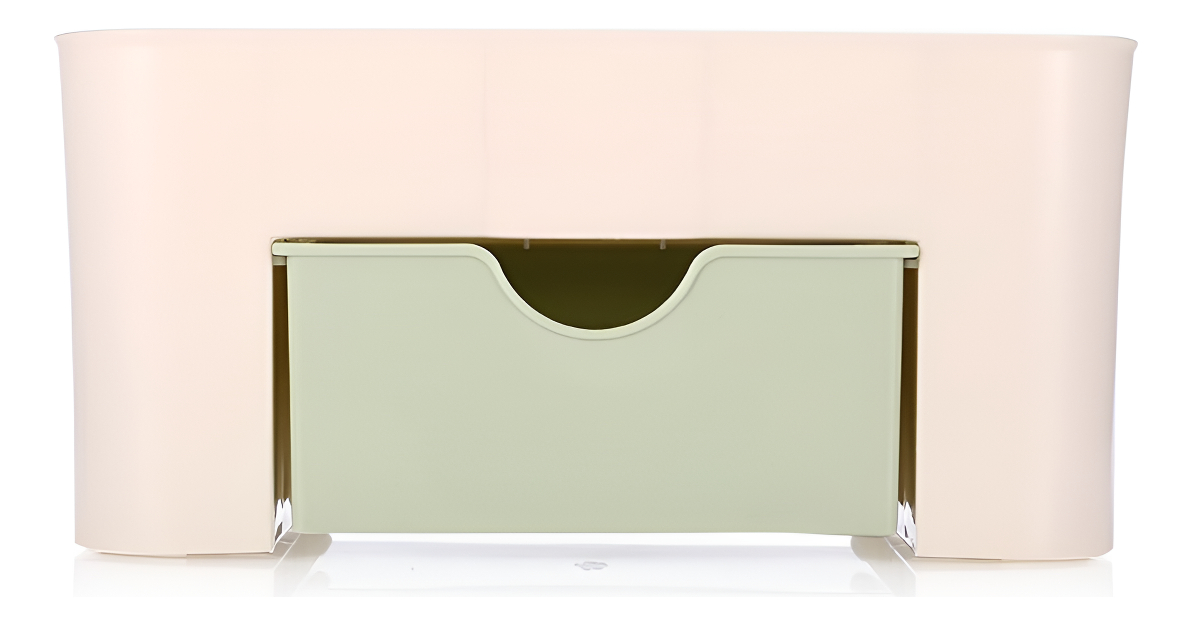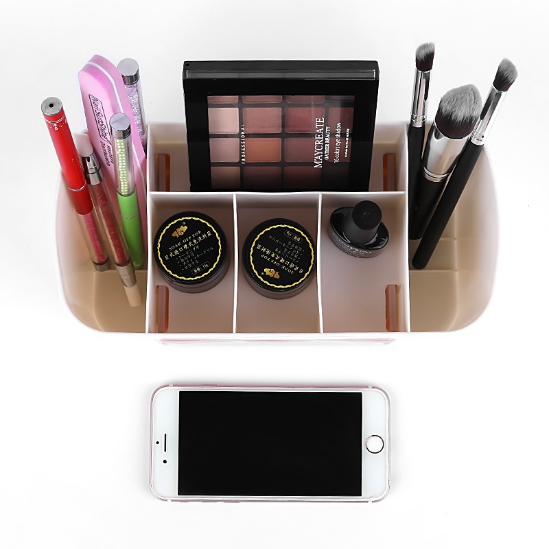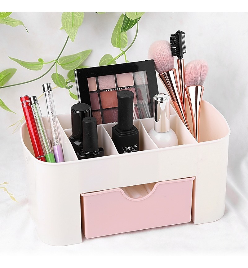 Descripción: organizador de maquillaje Material: plástico (PP) Color: verde oliva, verde musgo, rosa Tamaño: 10x10x21cm Peso neto: 220g Uso: Joyería, cosméticos, almacenamiento de material de oficina Paquete: paquete Individual (una pieza)