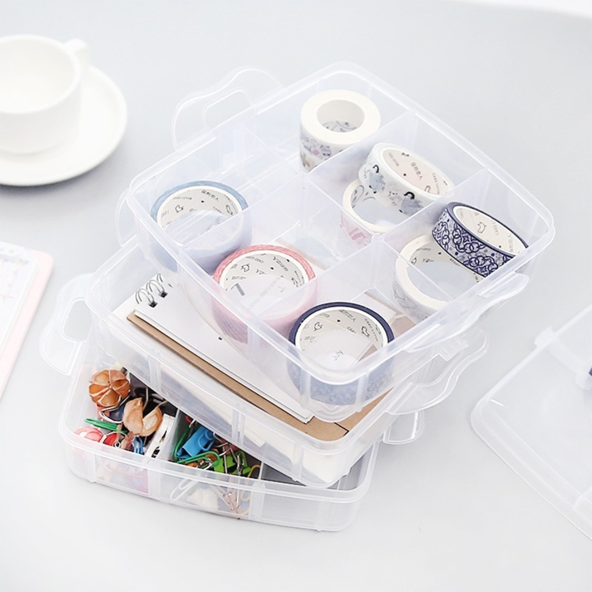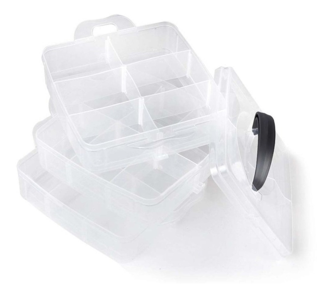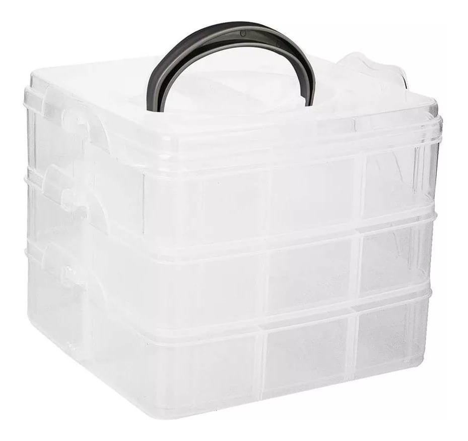 Práctica caja organizadora de 3 pisos desmontables ideal para ordenar y clasificar diferentes tipos de objetos. Fabricada en PP transparente de alta calidad, te permite visualizar fácilmente su contenido, optimizando el espacio y manteniendo todo en orden.