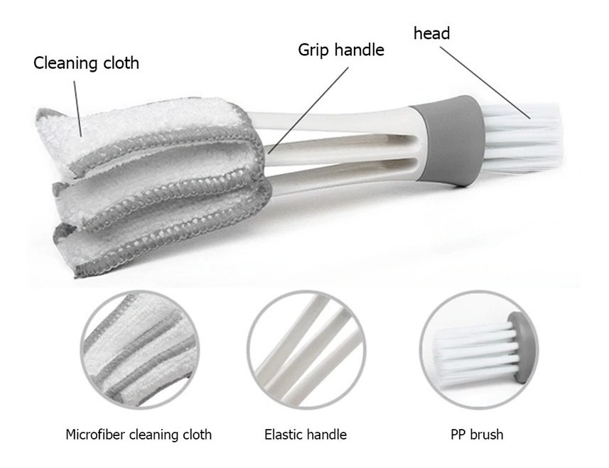 Cepillo de doble punta: el cepillo de microfibra limpia tu coche completamente. Diseño preciso: alcanza la ventilación fácilmente y sin esfuerzo. Material de alta calidad: duradero. Ideal para la ventilación del coche, limpieza de persianas… Especificaciones: