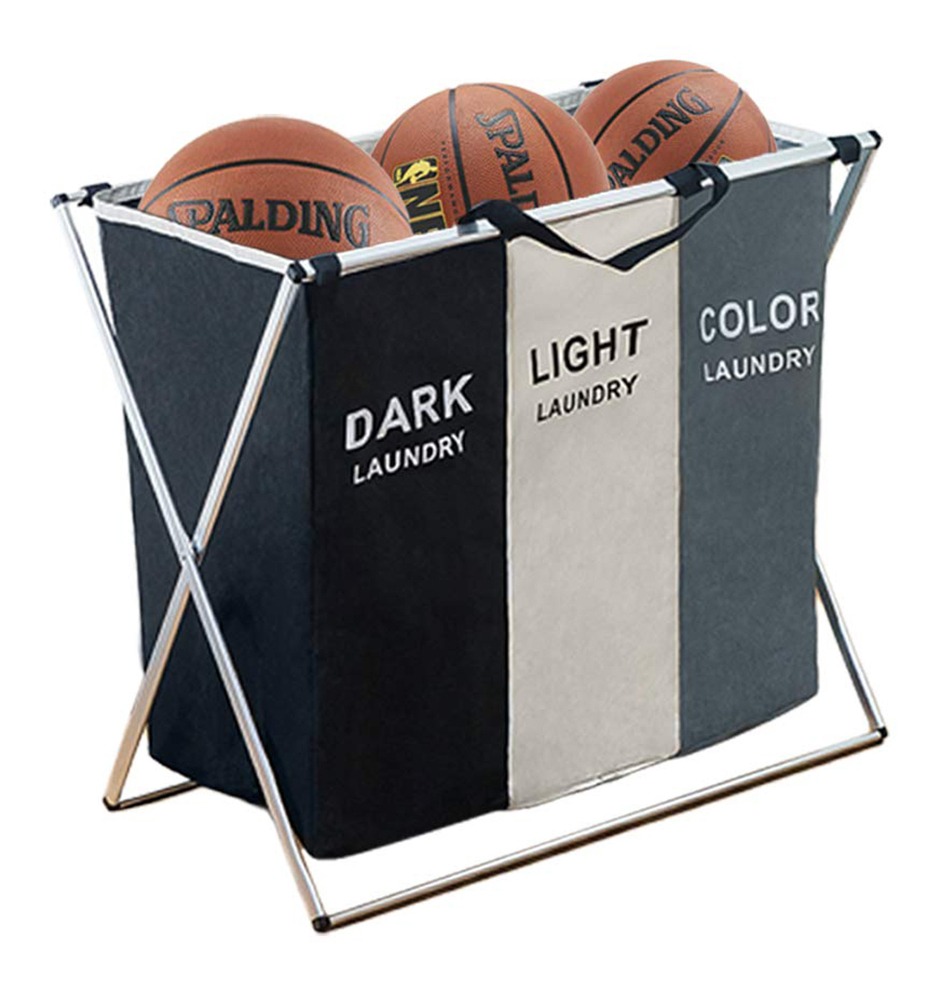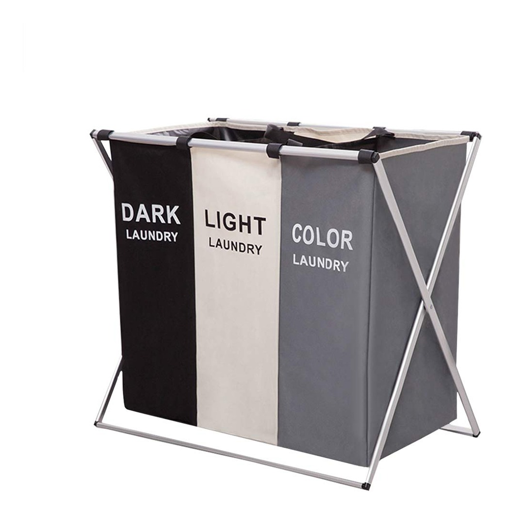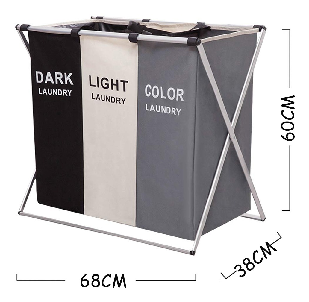 – Gran capacidad de 3 secciones: dividida en 3 secciones para que pueda clasificar su color oscuro y claro a medida que deja caer la ropa en el cesto. RECORDATORIO: Para lavar la sección 3 del cesto de la ropa, simplemente límpiela a mano con un paño húmedo – Cada bolsa de ropa puede contener hasta 2 cargas de ropa de tamaño estándar. – Transporte más estable y fácil: 2 correas en la parte inferior son buenas para la estabilidad. Las correas de velcro son fáciles de poner y quitar y hacen que la bolsa de lavandería sea fácil de transportar. – Mantiene la ropa en su lugar: la parte superior con cordón de malla con cierre de cierre le ayuda a apilar la ropa y transportarla sin dejar caer. – Duradero y liviano: diseñado con un marco de aluminio desmontable y ensamblado y una bolsa de material duradero para ser liviano pero duradero para uso frecuente en su dormitorio, lavandería, baño, universidad, apartamento o en el armario, etc. – El marco de aluminio X se pliega fácilmente para guardarlo cuando no utilizar. – Proporciona resistencia duradera: su exterior de tela resistente se mantiene bien con el tiempo incluso con el uso diario, y es una excelente opción para niños, adolescentes y adultos por igual.