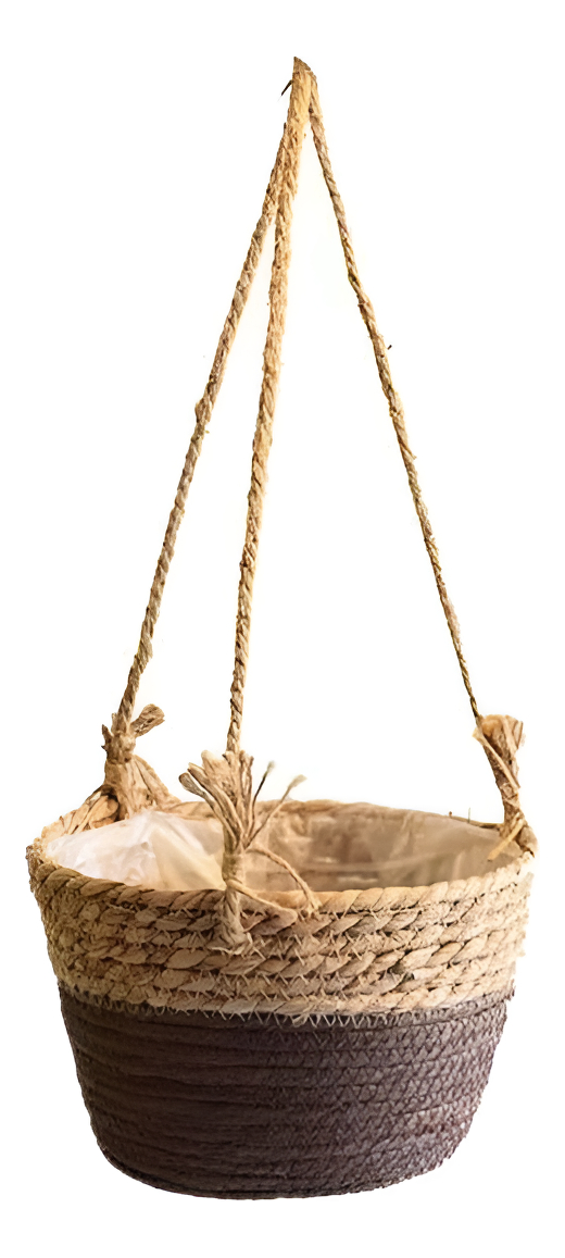Cesto Porta Maceta Colgante En Ratan Tejido Forrado Grande