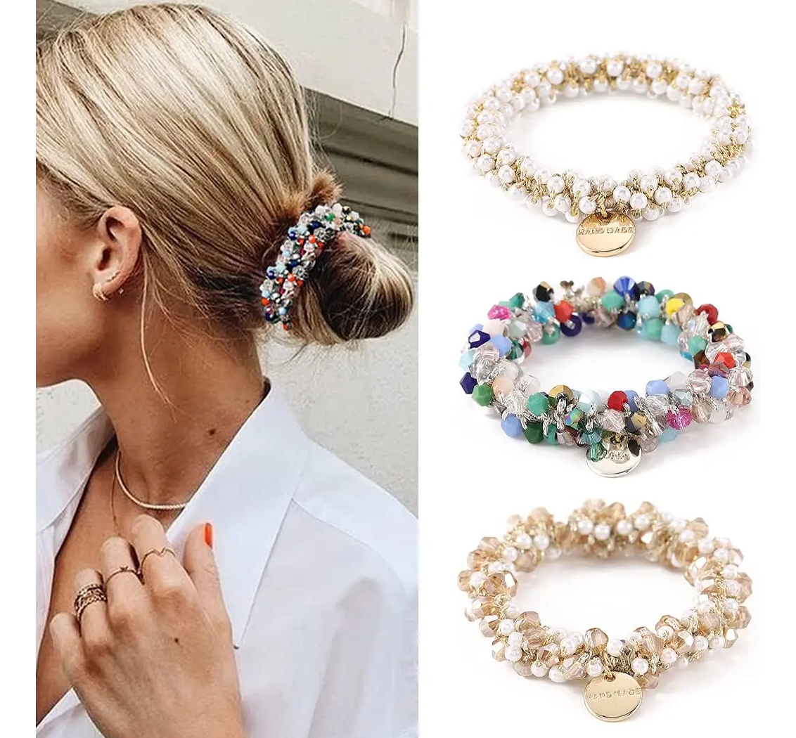 Colitas Scrunchies En Gemas Pelo Cabello Colores Multicolor