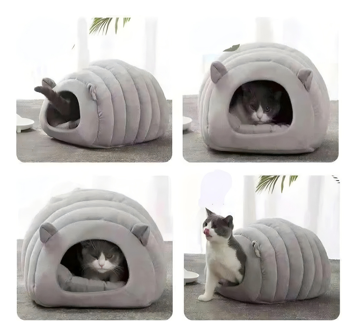 Cueva Cama Peluche Acolchada Para Gatos Perros Chica Color Gris Diseño Oruga