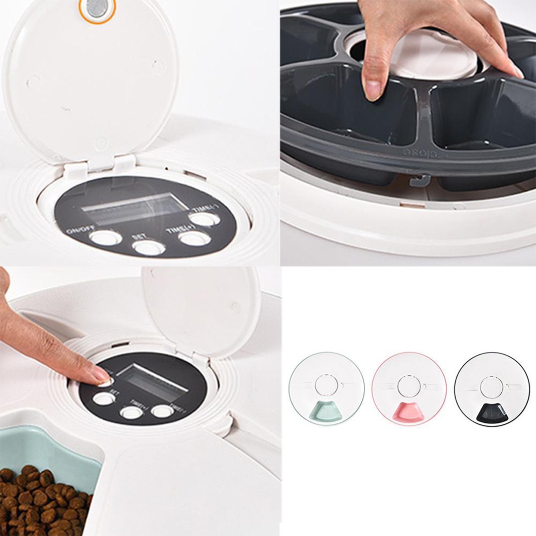 El producto está hecho de materiales de grado alimenticio y es inofensivo para los humanos y los animales domésticos. Dispositivo temporizador, ajusta la hora de la cena de la mascota. Diseño de 6 comidas, puede preestablecer 6 tiempos diferentes para 6 comidas. Adecuado para perros y gatos.