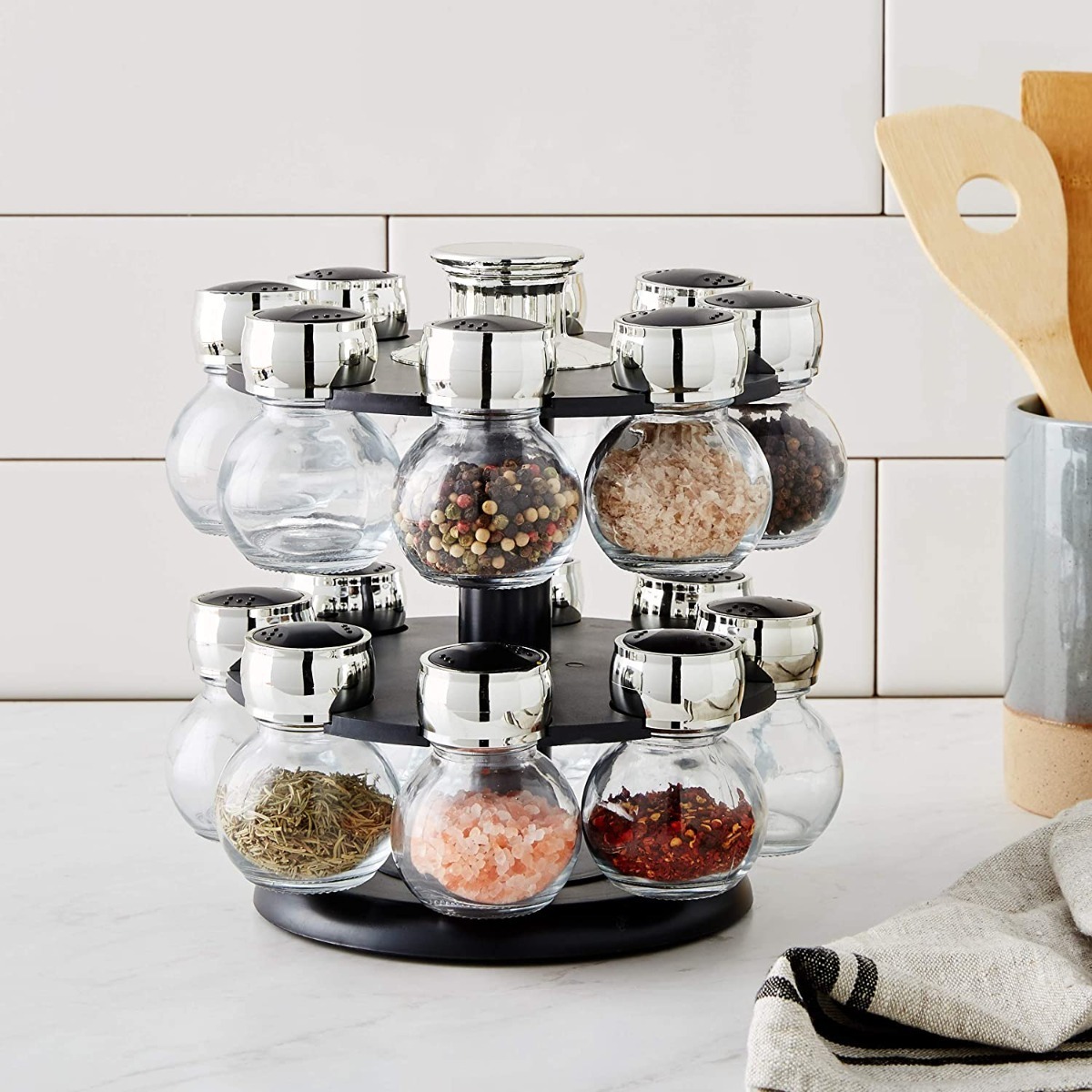 Especiero Vidrio Giratorio 16 Frascos Especias Cocina Tapa