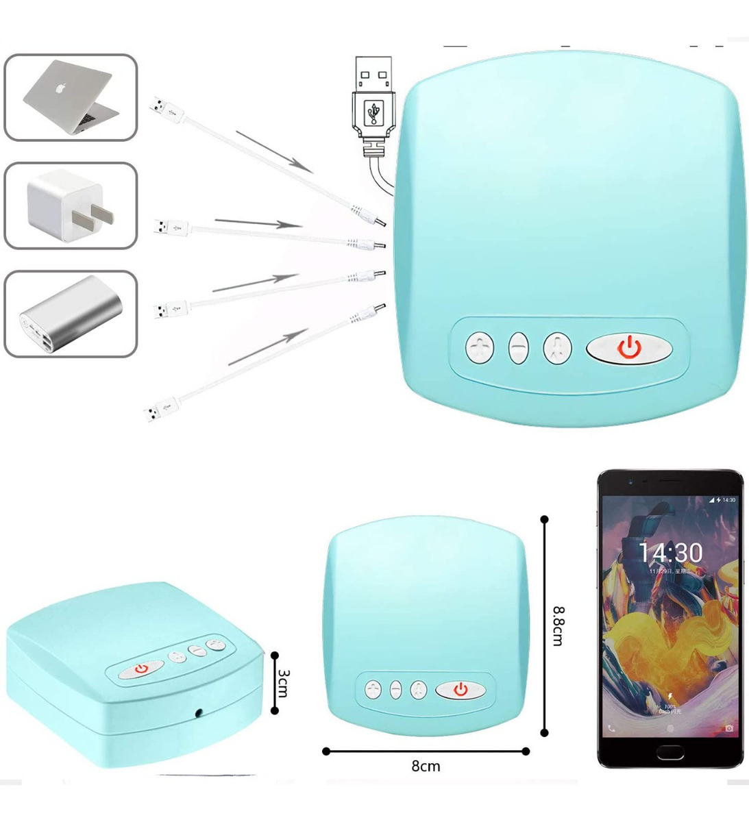 – Funciona con cualquier fuente o cargador con entrada USB de 1A (estándar) o más, el mismo no viene incluido.