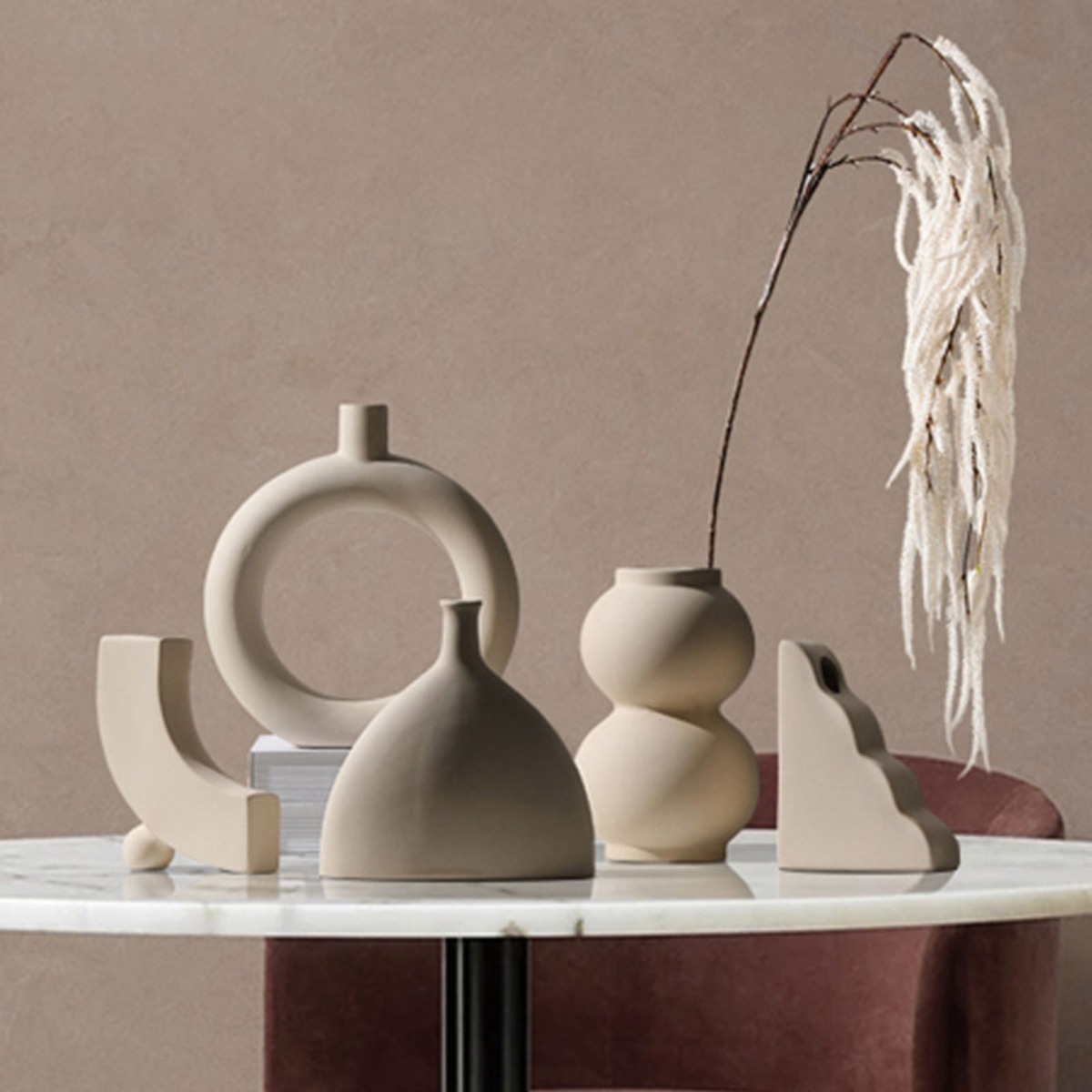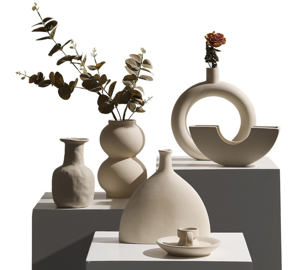 Florero vasija moderna en cerámica con terminación lisa, estilo minimalista varios diseños.
