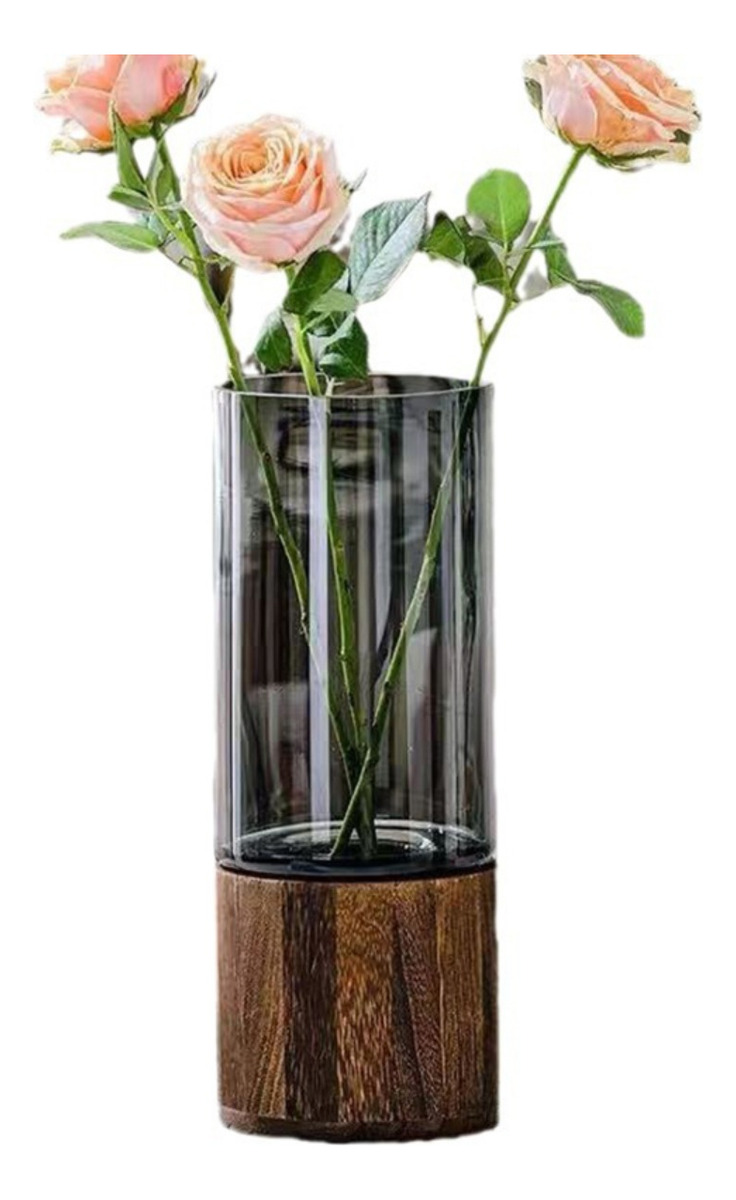 Florero Moderno En Vidrio Con Base En Madera – Chico