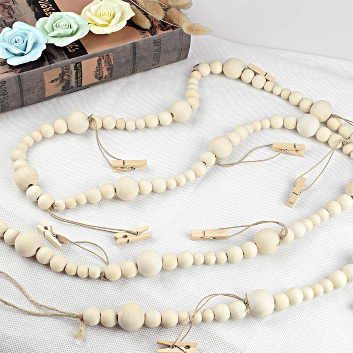 Guirnalda de bolas de madera con 12 clips para fotografías.Ideal para decorar habitaciones, fiestas y mucho más!