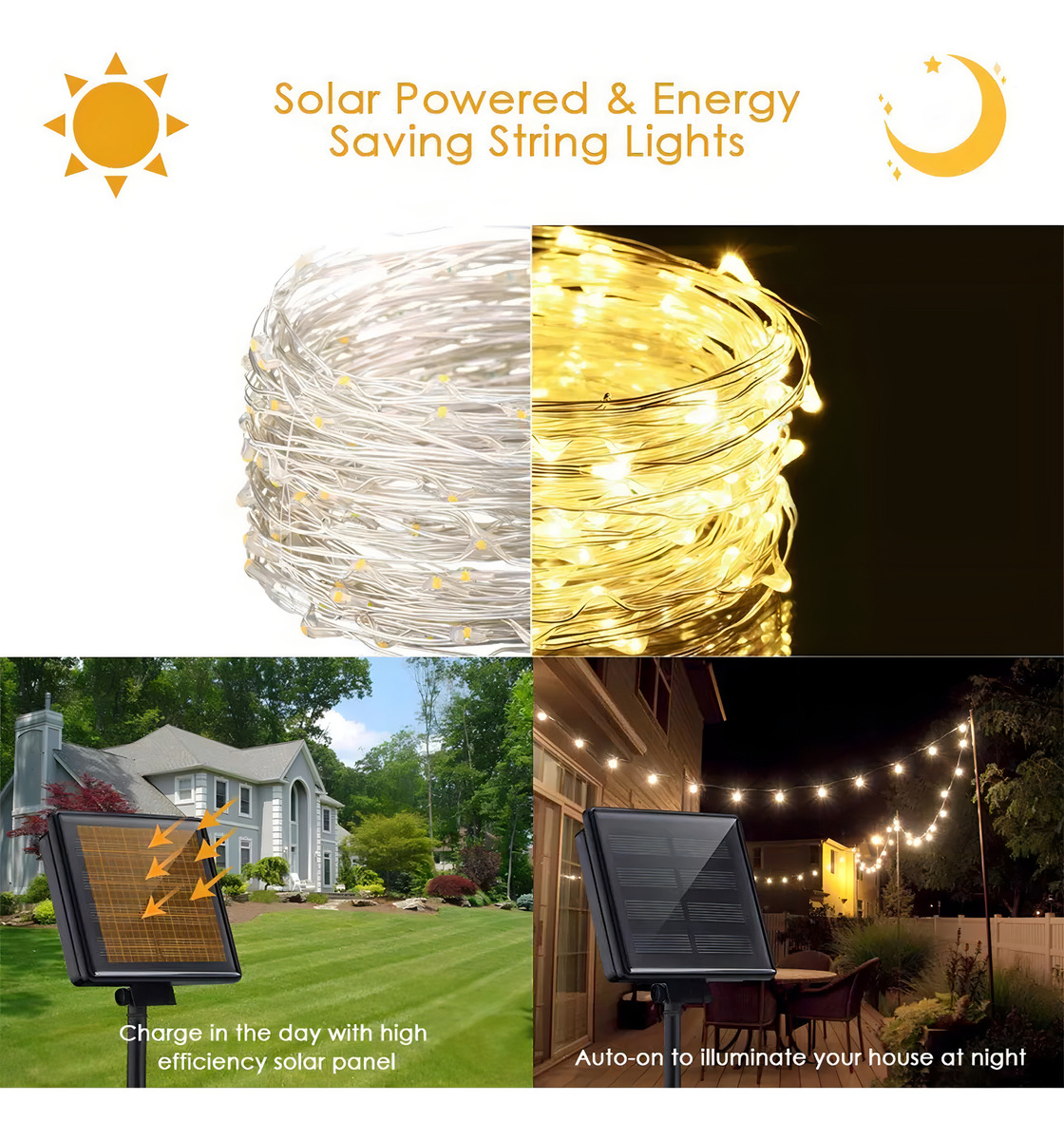Guirnalda Guía 100 Mini Luces Led Luciérnagas Solar Navidad Luces Calida
