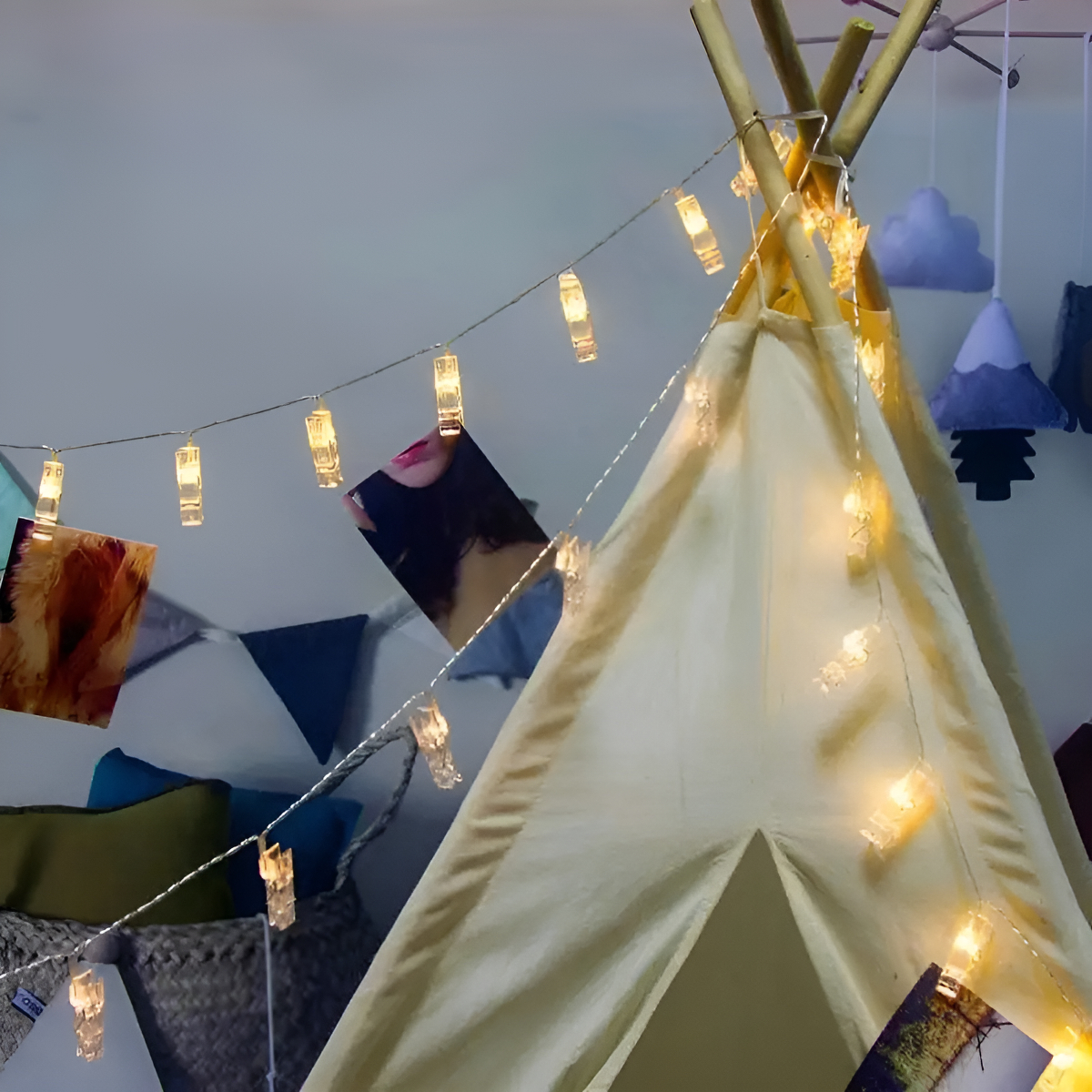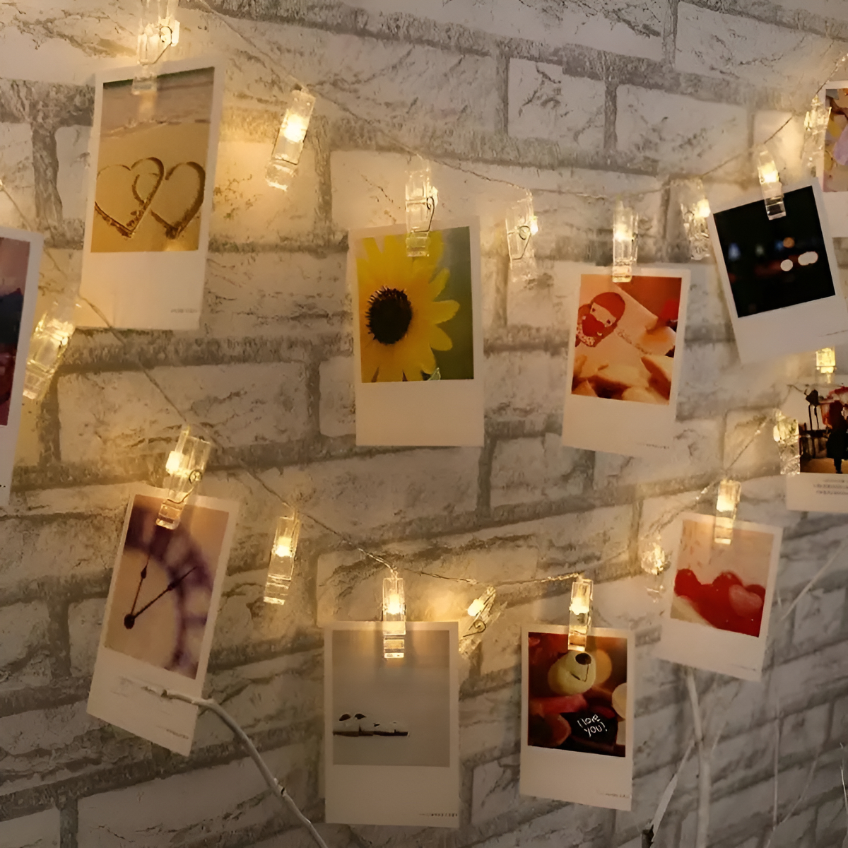 Ilumina tus recuerdos con esta encantadora guirnalda de clips con luz LED. Perfecta para colgar fotos, postales o notas y dar un toque único a cualquier espacio: desde casamientos y cumpleaños, hasta la decoración diaria de tu hogar.