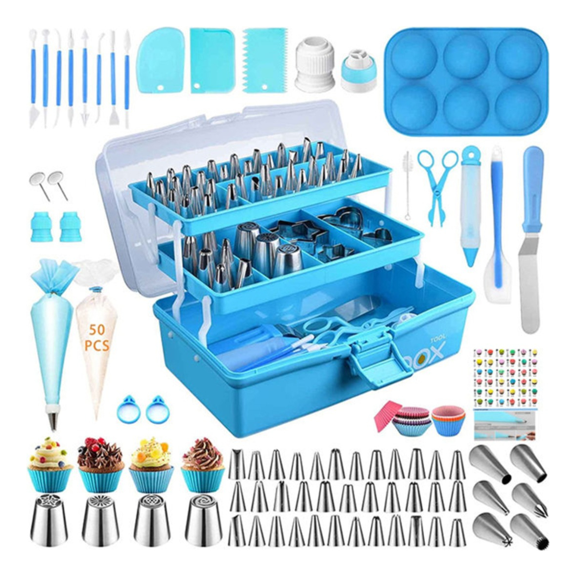 Con nuestro kit, tendrás a tu disposición una amplia gama de herramientas de calidad profesional. Desde cortadores de masa y boquillas de decoración hasta moldes de silicona y espátulas, cada pieza ha sido cuidadosamente seleccionada para brindarte la máxima comodidad y versatilidad.