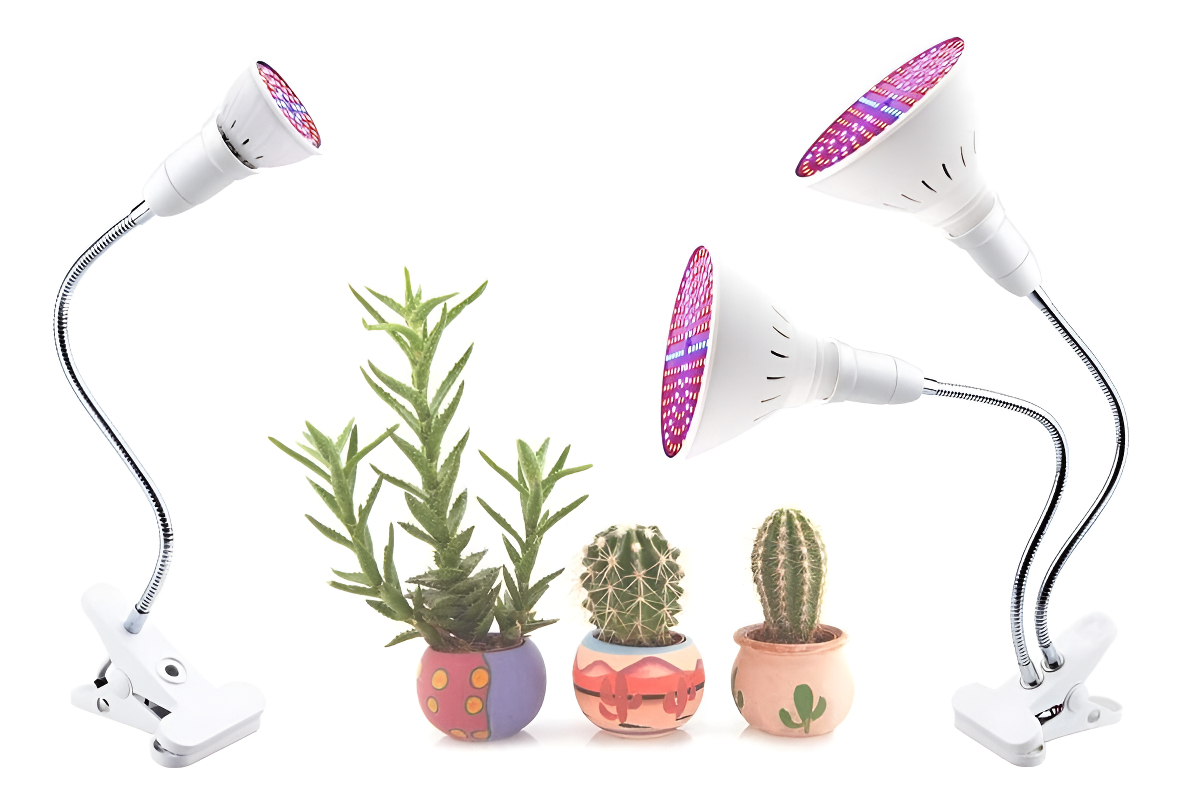 Tus plantas ahora pueden crecer más fuertes y saludables con la Lámpara de Cultivo LED Doble con Pinza. Este kit incluye 2 bombillas LED de espectro completo montadas en un soporte flexible con pinza resistente, ideal para fijar en mesas, estanterías o macetas.