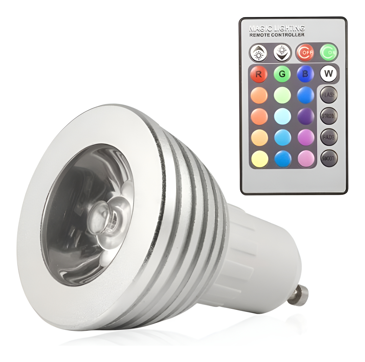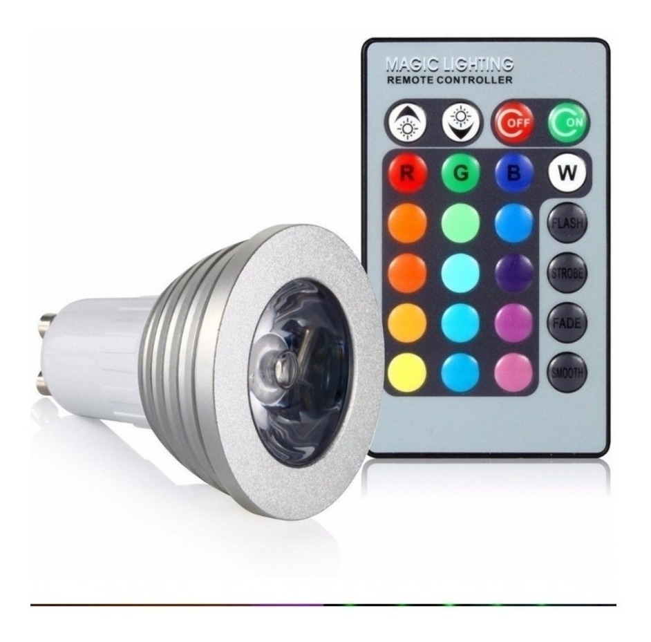 Lámpara 5w Gu10 Led Rgbw 16 Colores Dimmer C/ Control Remoto