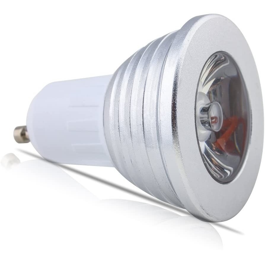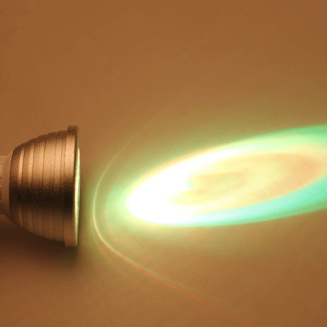 – Ideal para tus fiestas o para ambientar un espacioA solo necesitas un portalámparas pase gu10 – Consume tan sólo 5 watts!! Por lo que también ahorra energía. – Tiene un control remoto para encenderlo, apagarlo, cambiar colores, modos automáticos, e intensidad de brillo. – Hay cuatro modos automáticos: Flash, Estrobo, Suave y Tenue – Cada modo va cambiando gradualmente entre los 16 colores con diferentes efectos y velocidades de transición. – También tienes 3 niveles de intensidad de luz ajustables