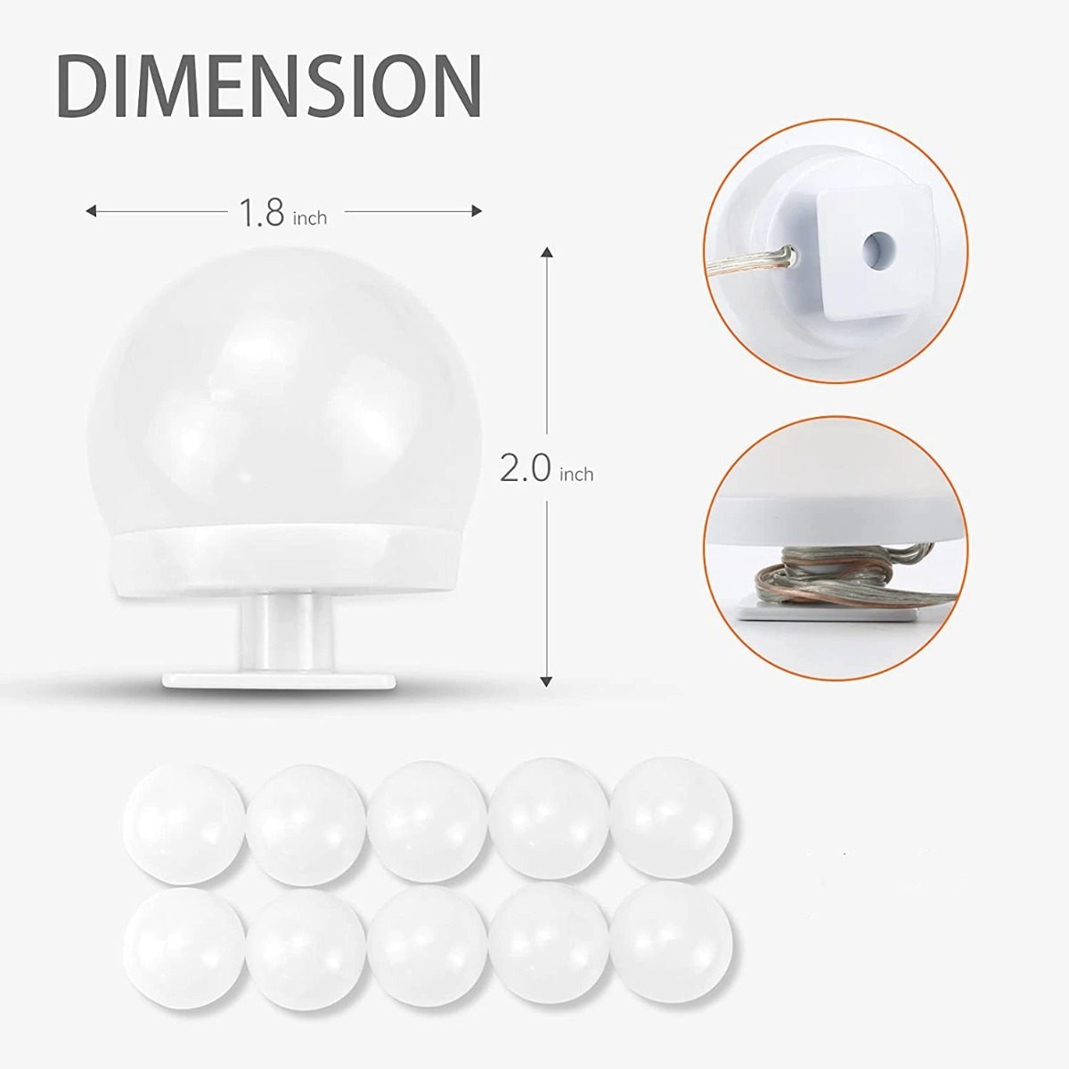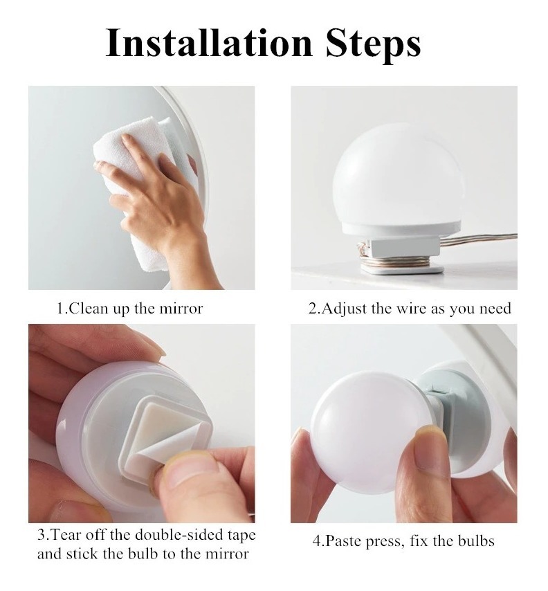 Paquete incluye: 1x bombillas de espejo de maquillaje Cintas doble faz para pegar