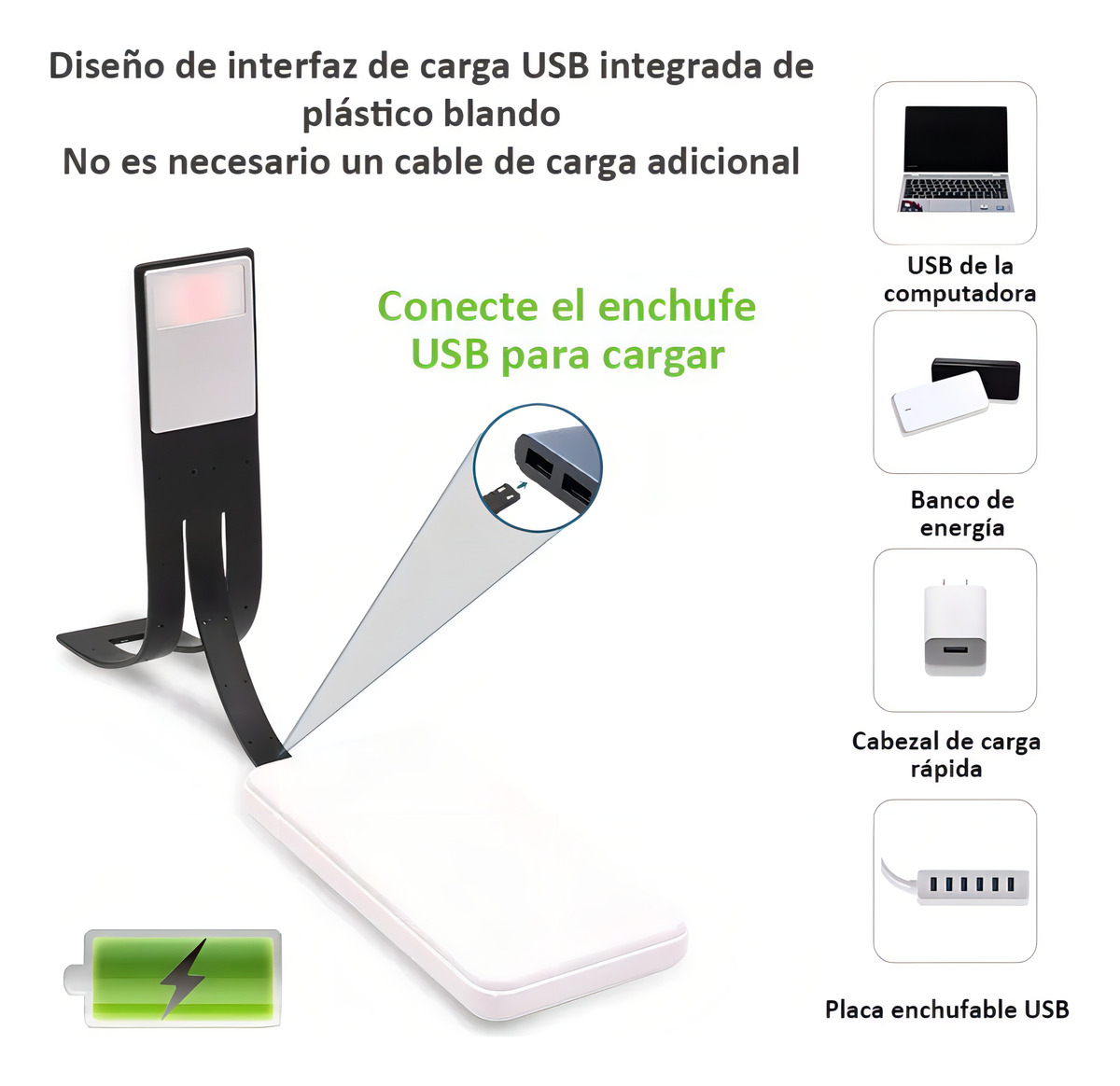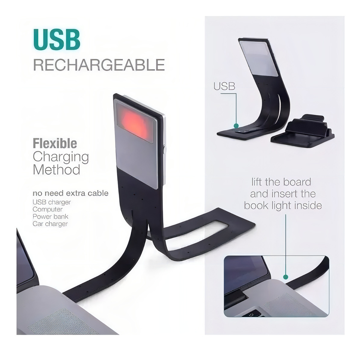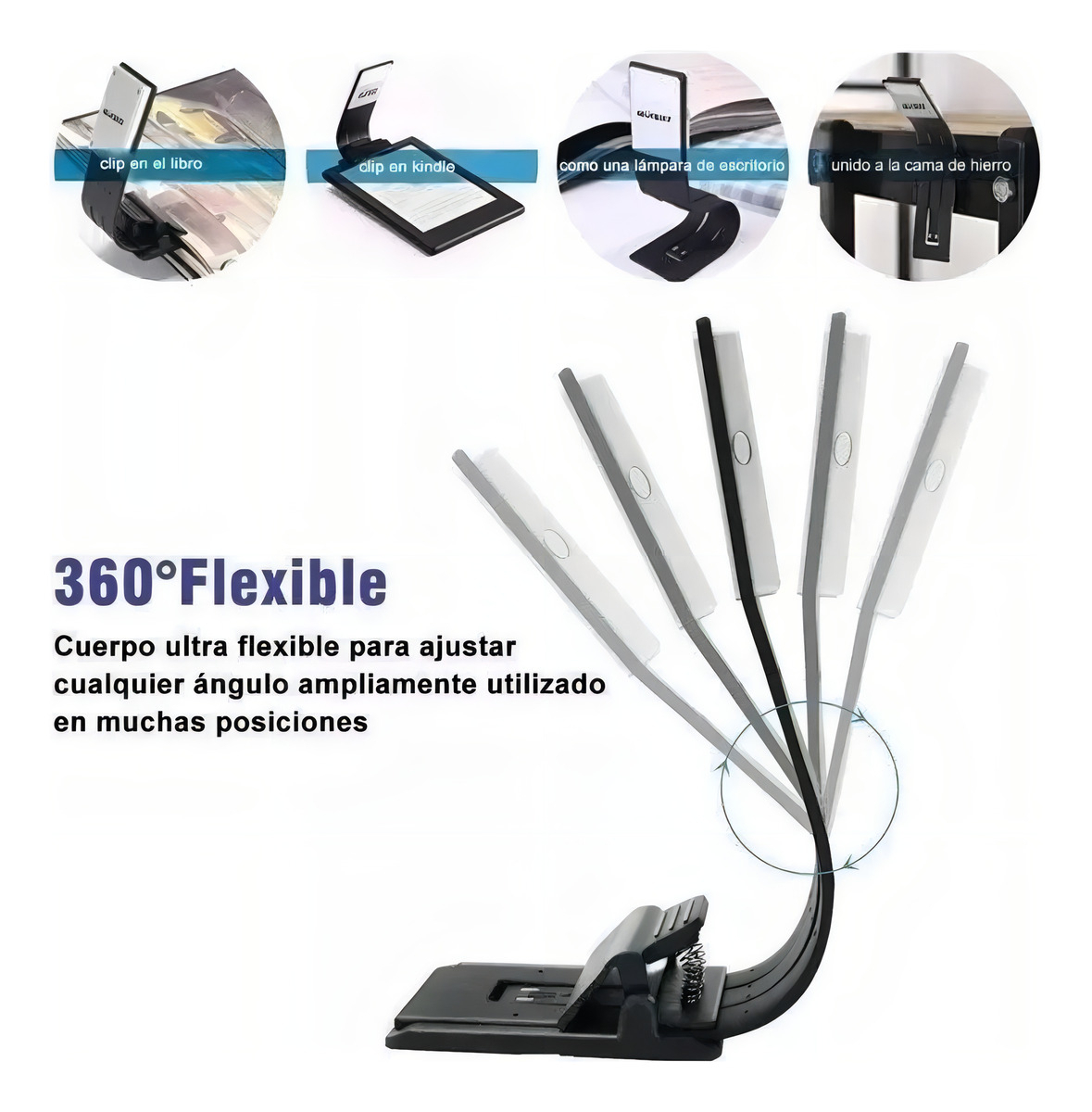 Luz Para Libro Led Clip Portátil Luz De Lectura De Libro Estructura Negro