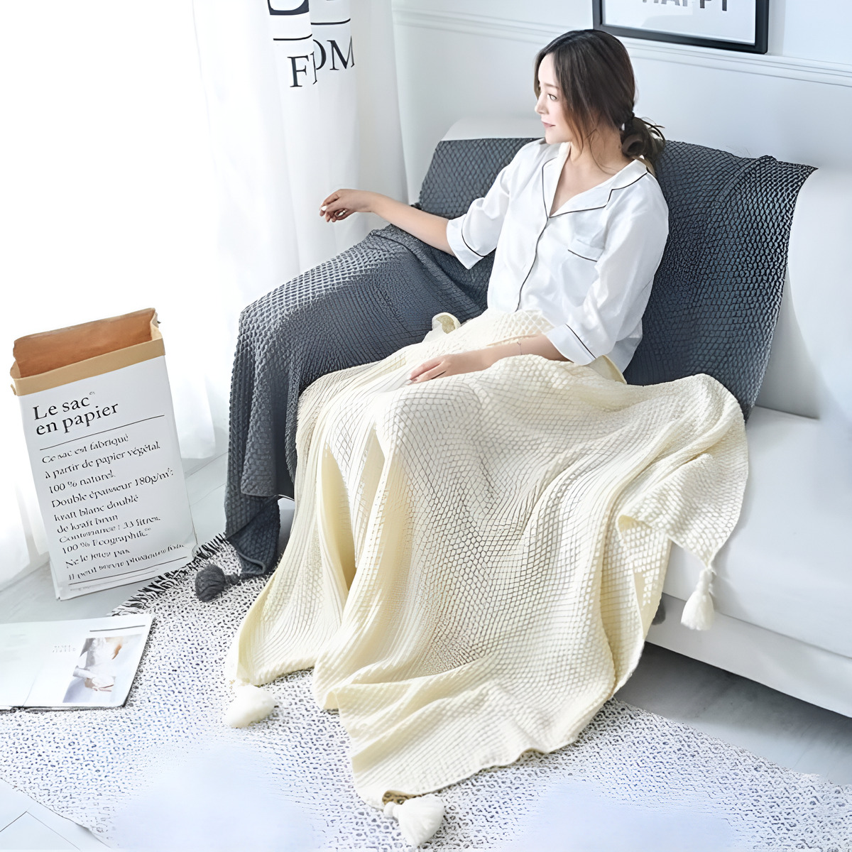 . Incluye: 1 manta con borlas decorativas.