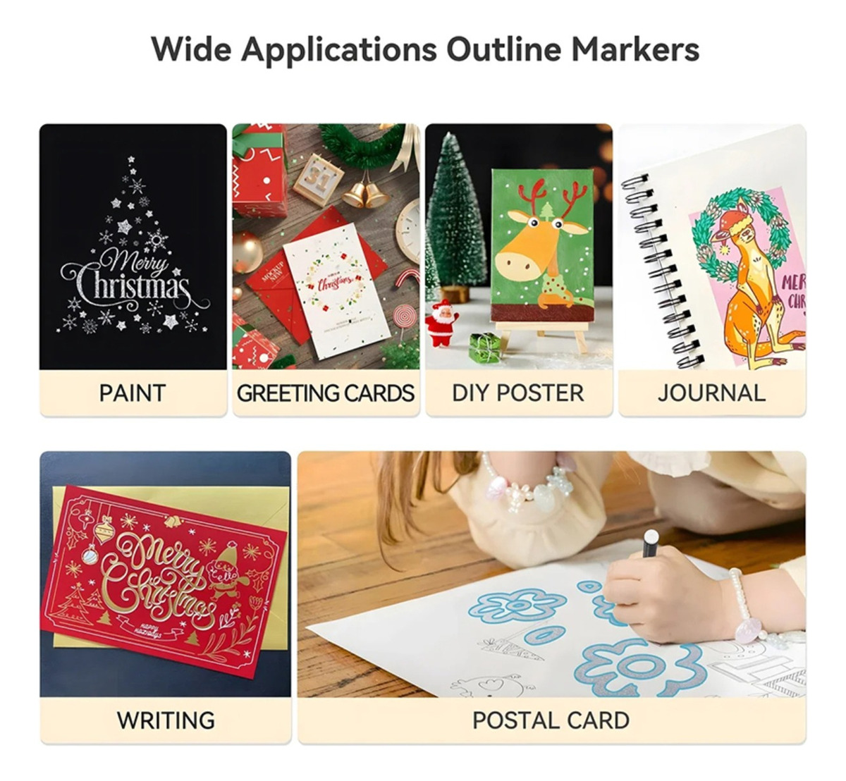 Pack de 24 marcadores contorneadores metalicos. Al escribir o dibujar la tinta se separará dejando el trazo metálico y un contorno del color elegido. Ideal para manualidades, carátulas y mucho más!