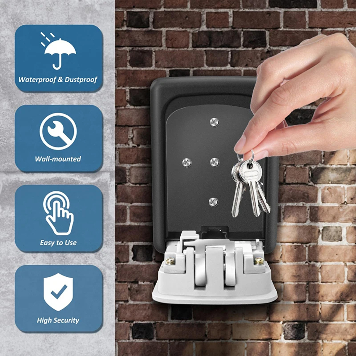 Mini caja de seguridad para llaves con combinación para montar en la pared. Ideal para mantener tus llaves seguras y accesibles, cuenta con un mecanismo de combinación de 4 dígitos que puedes ajustar según tus necesidades. Fabricada con materiales duraderos y resistente a la intemperie, esta caja es perfecta para el hogar, oficina o cualquier lugar donde necesites un acceso seguro. Incluye tornillos para instalación y manual. Mantén tus llaves organizadas y seguras de manera práctica y eficiente.