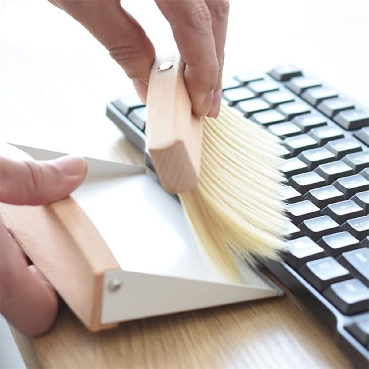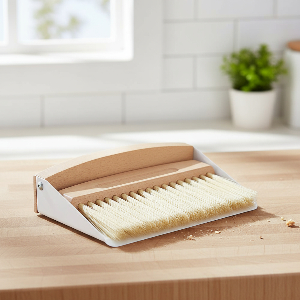 Set de limpieza compacto con cepillo y recogedor magnético, perfecto para eliminar migas, polvo y suciedad de superficies pequeñas como mesas, encimeras o escritorios. Su diseño ergonómico con mango de madera y cerdas suaves permite una limpieza eficaz sin dañar las superficies. El recogedor incluye un práctico imán que mantiene ambas piezas unidas para un fácil almacenamiento.