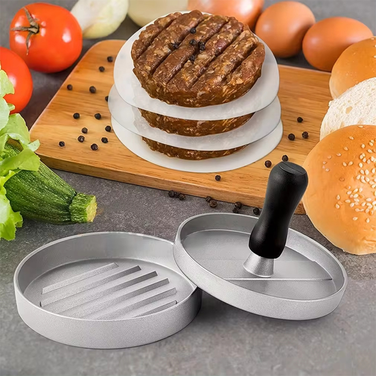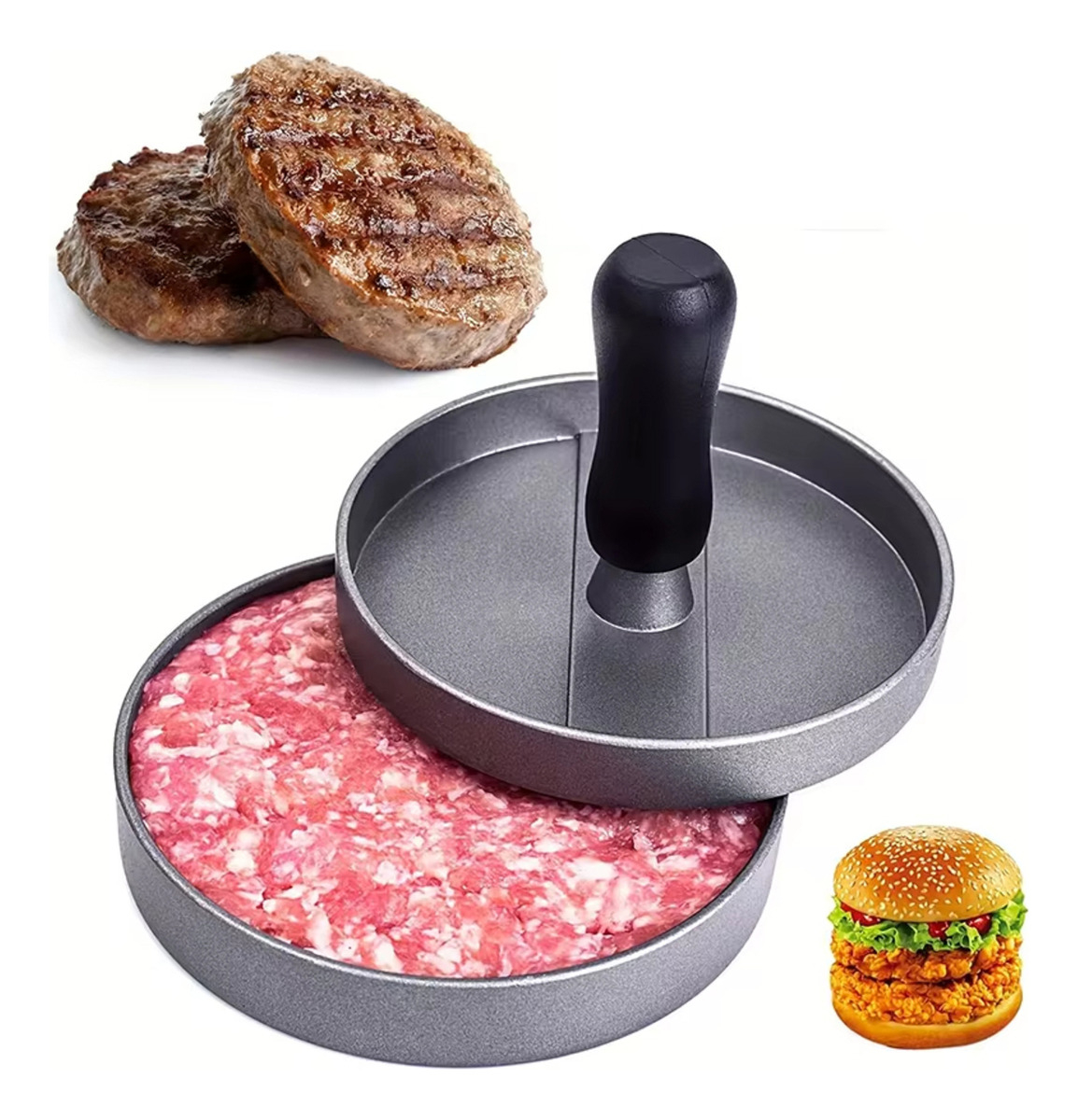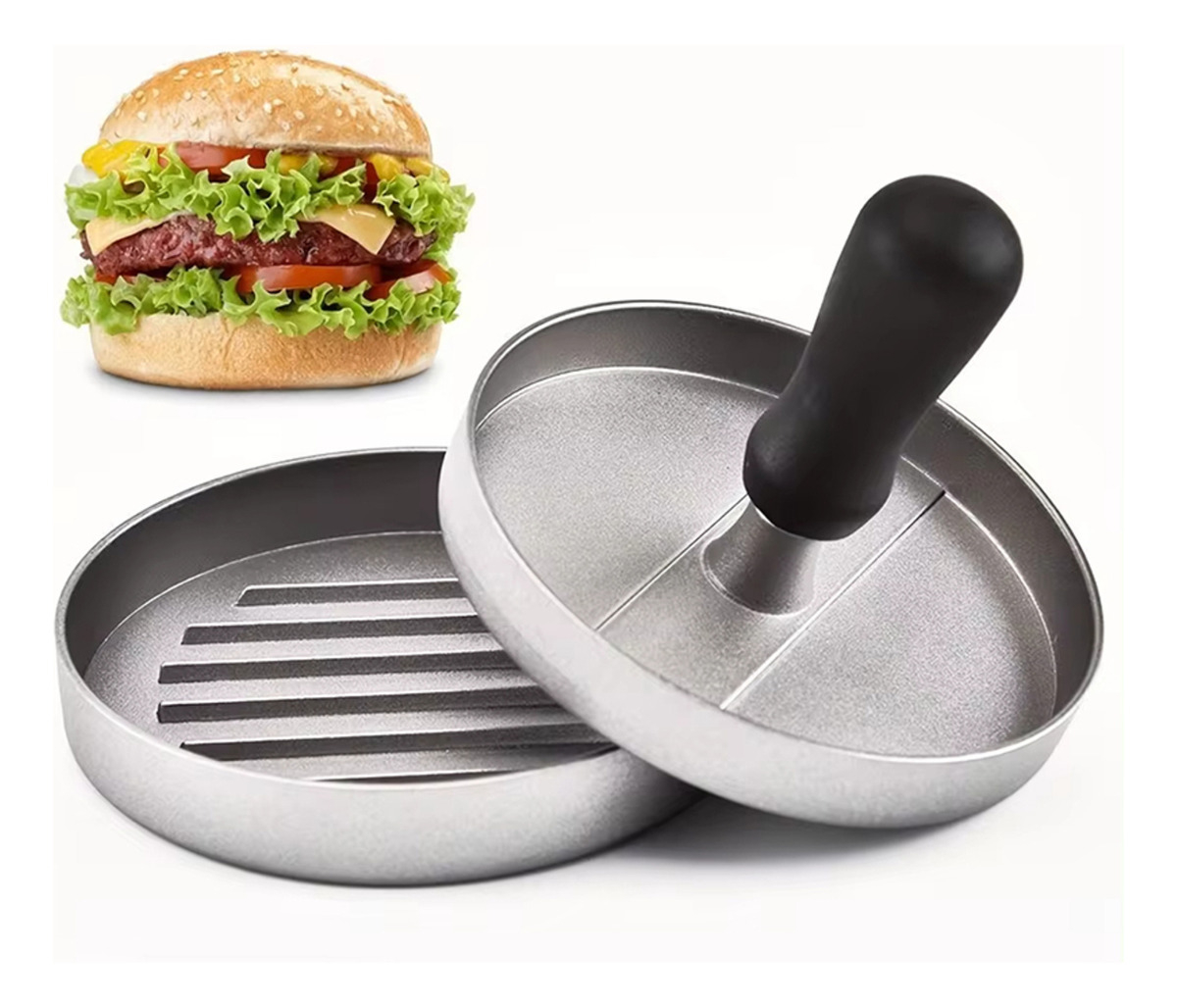 Molde Para Hamburguesas Individual De Metal Prensa Color Plateado