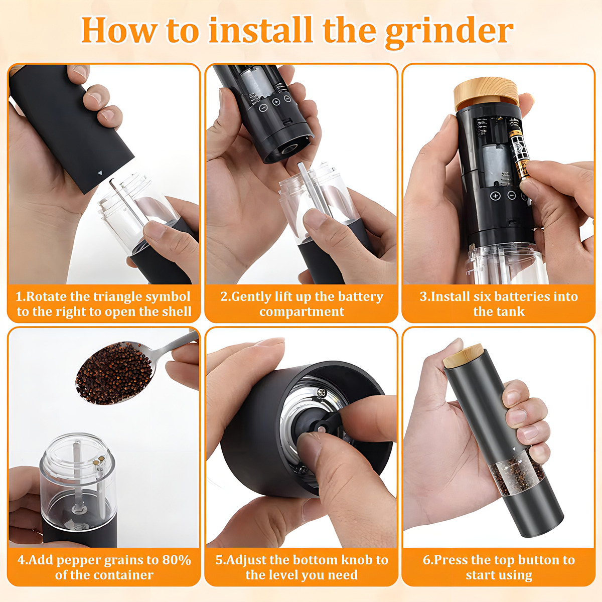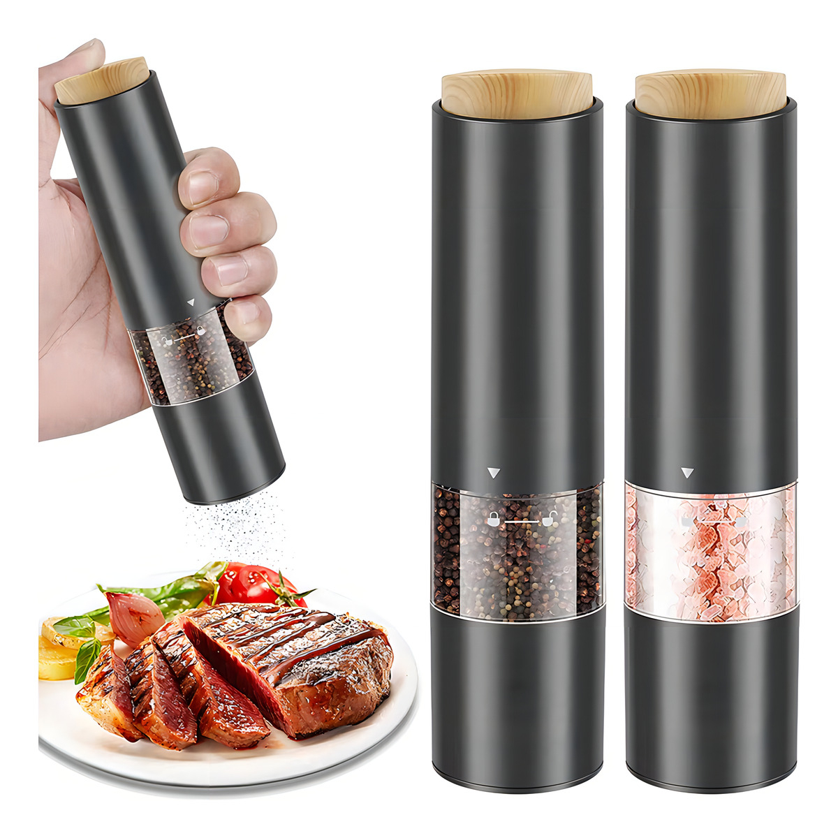 Molinillo Pimentero Eléctrico De Mano A Pilas Con Luz Color Negro