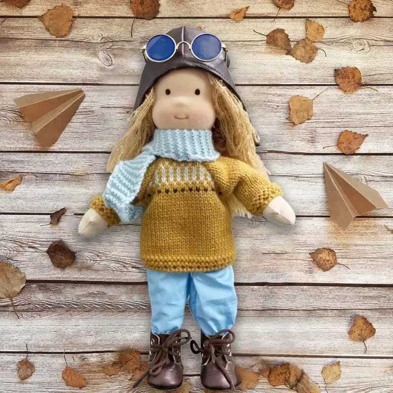 Muñeca Juguete Aviadora Hecha A Mano Para Niñas Niños 30cm