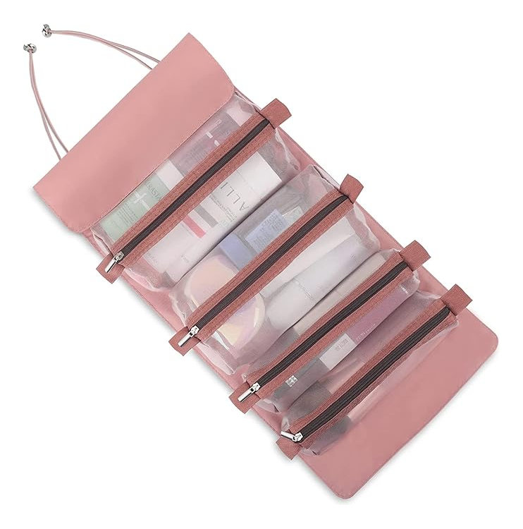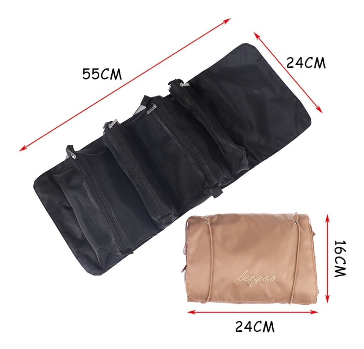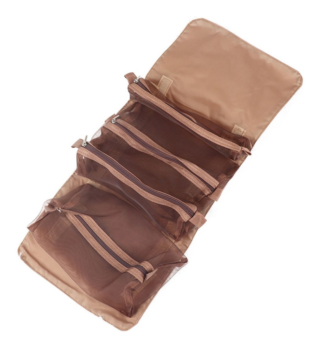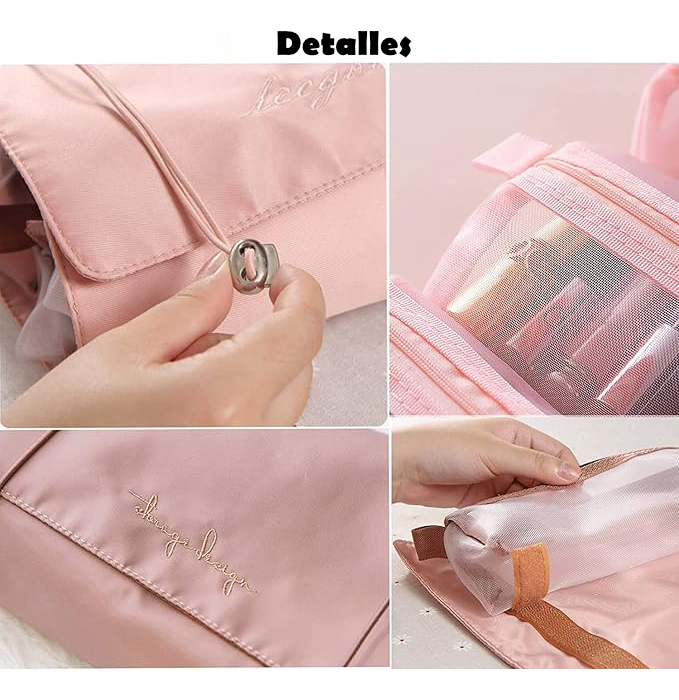 Práctico neceser plegable, cuenta con 4 compartimentos de distintas capacidades, estilo cartuchera que se adhieren por velcro, lo que permite extraerlos, reordenarlos, cambiarlos y mucho más. Gran capacidad y versatilidad. Tamaño abierto: 24cm x 55cm Tamaño cerrado: 15cm x 24cm Tamaño cartucheras grandes: 22cm x 13cm Tamaño cartucheras chicas: 22cm x 5cm