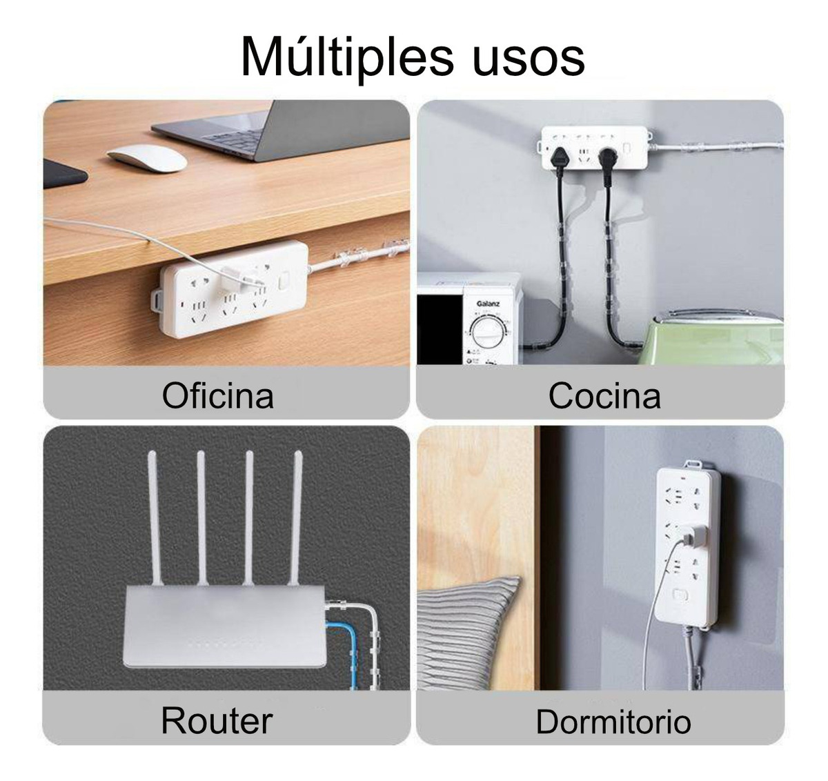 Organizador de plástico fijo, perfecto para oficina, cocina o dormitorio. Soporte de enchufe giratorio montado en la pared, fijador de enchufes autoadhesivo sin perforaciones.