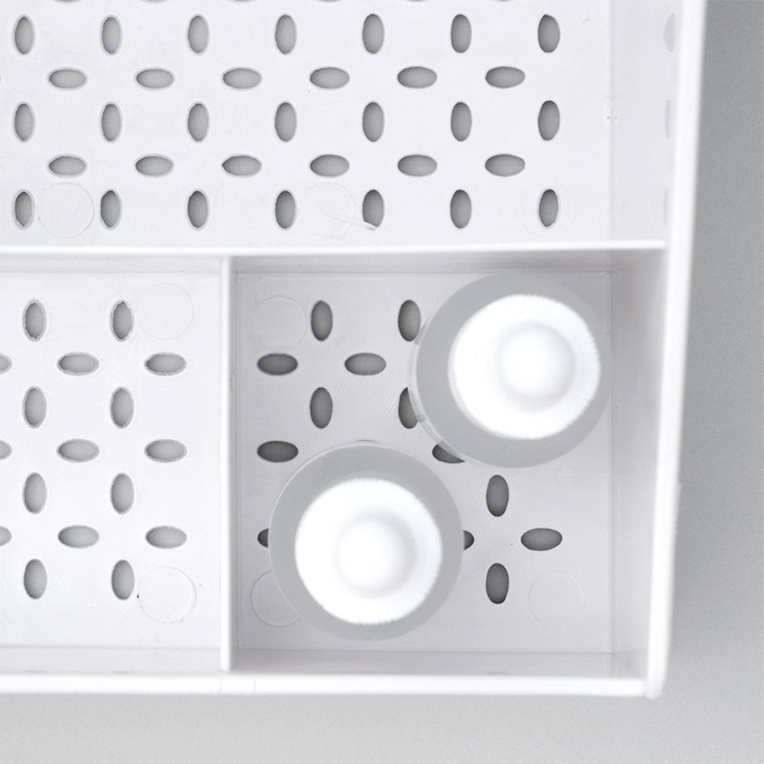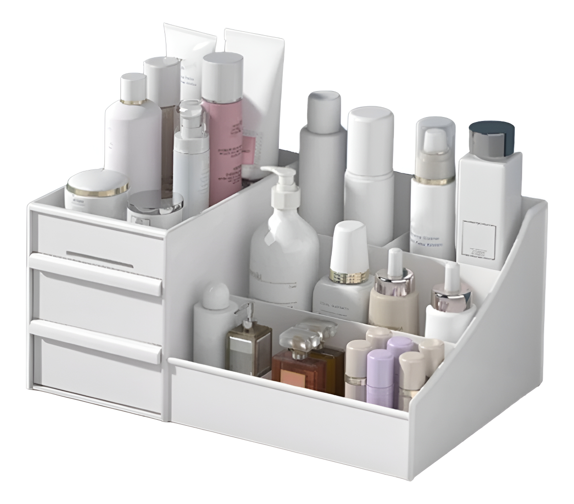 Práctico organizador de maquillaje fabricado en plástico de alta calidad, ideal para almacenar y exhibir tus cosméticos, joyería y accesorios de forma ordenada y accesible. Su diseño cuenta con cajones espaciosos que facilitan la organización, permitiendo clasificar tus artículos según su tamaño o utilidad. Perfecto para mantener tu tocador o baño ordenado y con estilo.