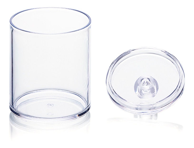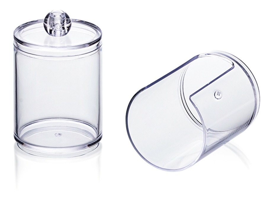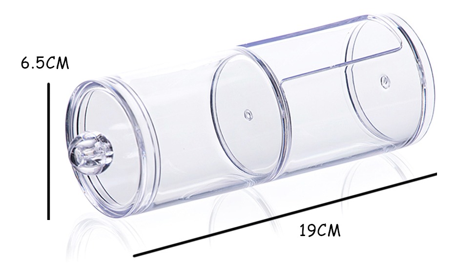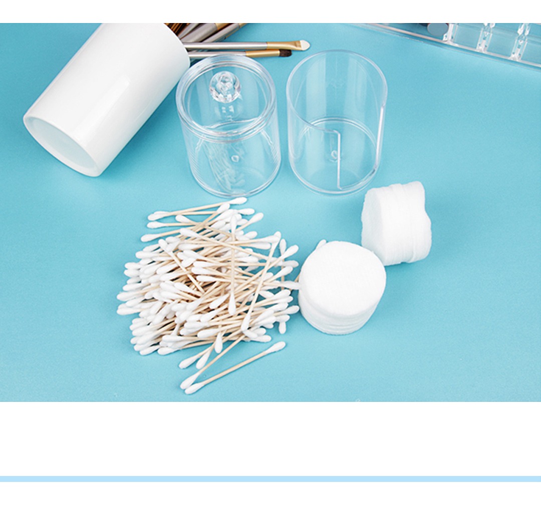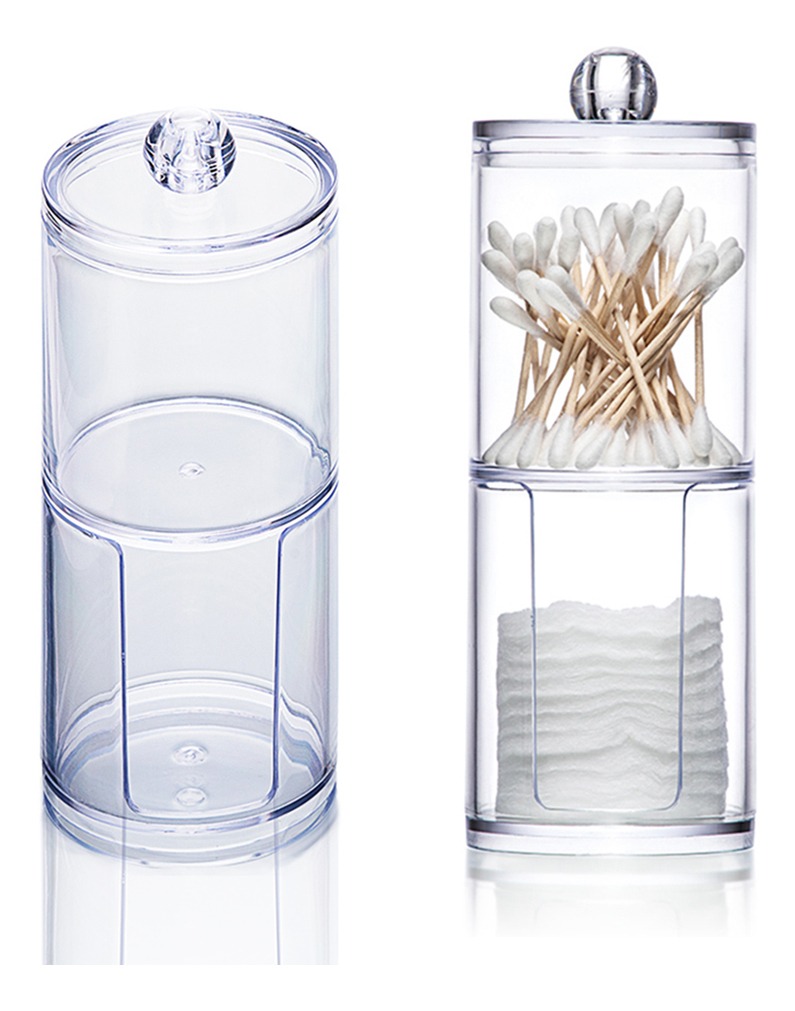 Práctico organizador de maquillaje con diseño de dos capas, ideal para guardar cotonetes, toallitas de algodón redondas, y más. Fabricado en acrílico resistente, su diseño transparente permite una fácil visualización de su contenido.