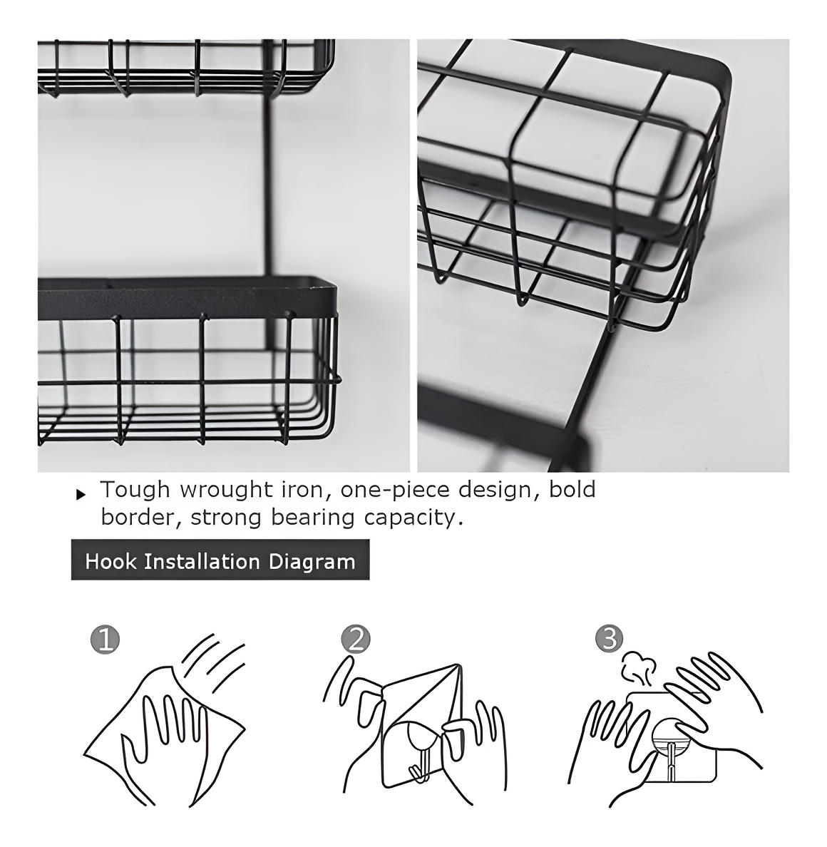 – Fácil de instalar: se cuelga en ganchos o adhesivos de pared (no incluidos), sin perforaciones.