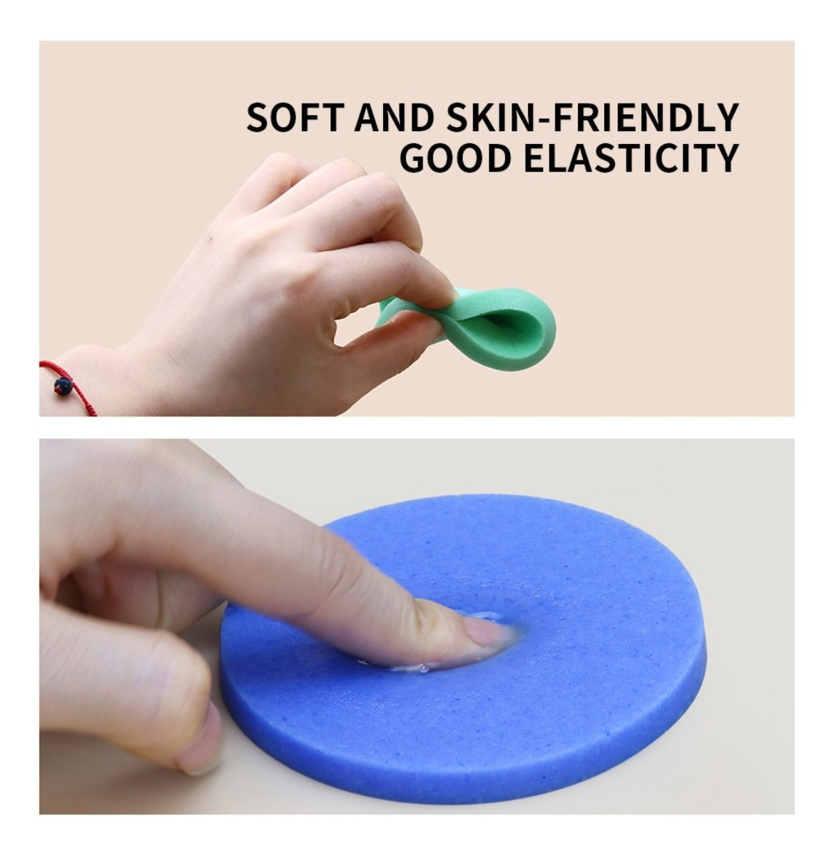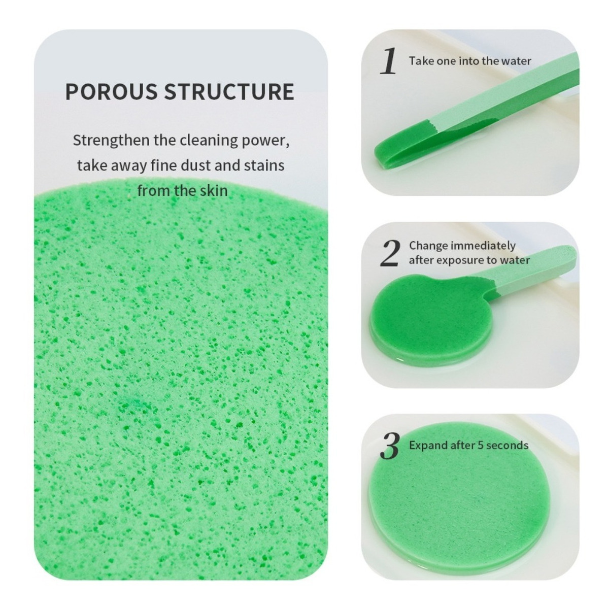 Pack x 12 esponjas faciales comprimidas, ideales para la cartera, viajes y demás. Al humedecerlas se expanden y toman su forma y tamaño finales, redondo 8 cm.