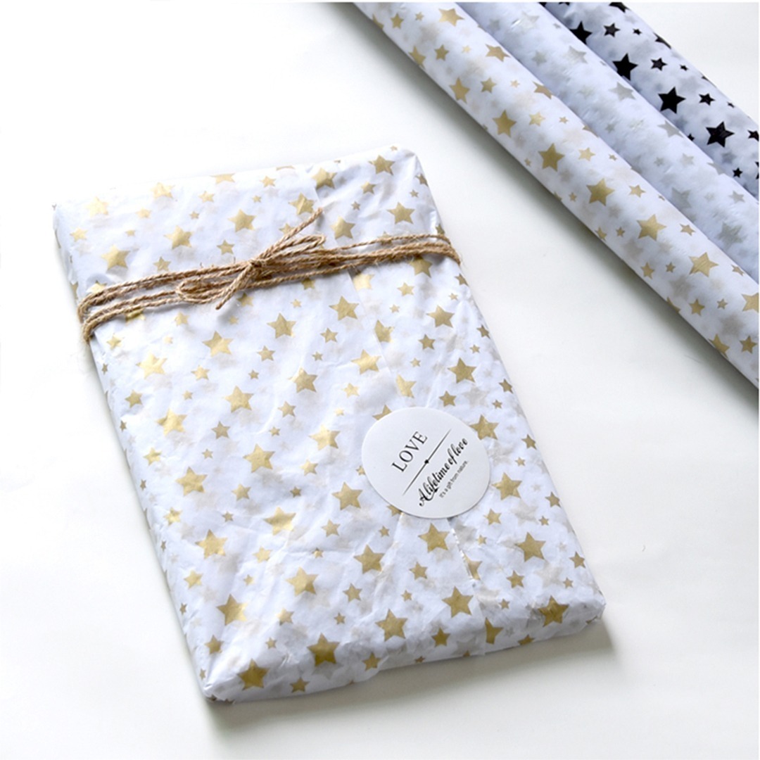 Papel de regalo su medida es de 74 cm de ancho x 50 cm de largo, ideal para envolturas, manualidades, decoración, arreglos florales y cotillón. Tonos delicados de textura suave y fina que se adaptan a cualquier ambiente con sus originales diseños de estrellas, rayas y lunares.