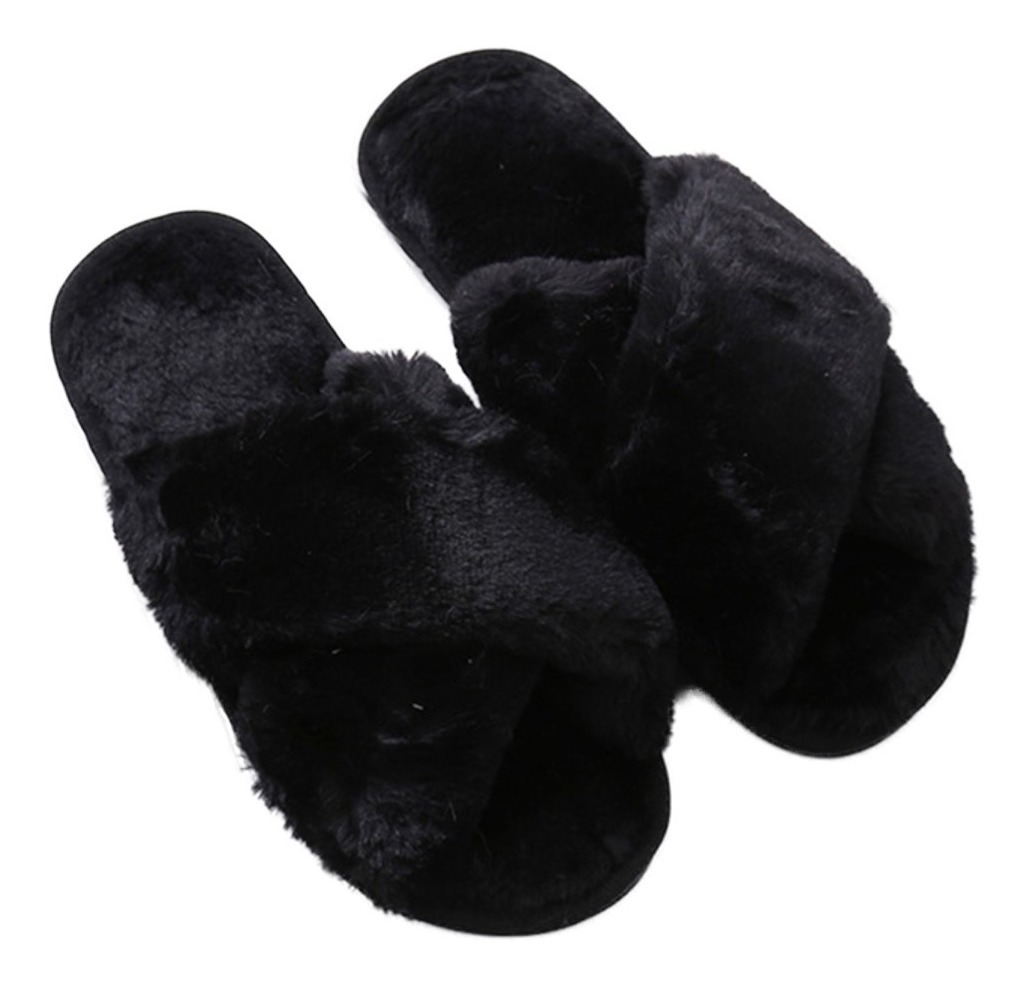 Pantuflas chatitas super peludas con diseño en X, fabricadas en piel sintética de alta calidad y suela de goma. Disponibles en varios talles, combinando elegancia y funcionalidad para brindar comodidad y estilo en todo momento.