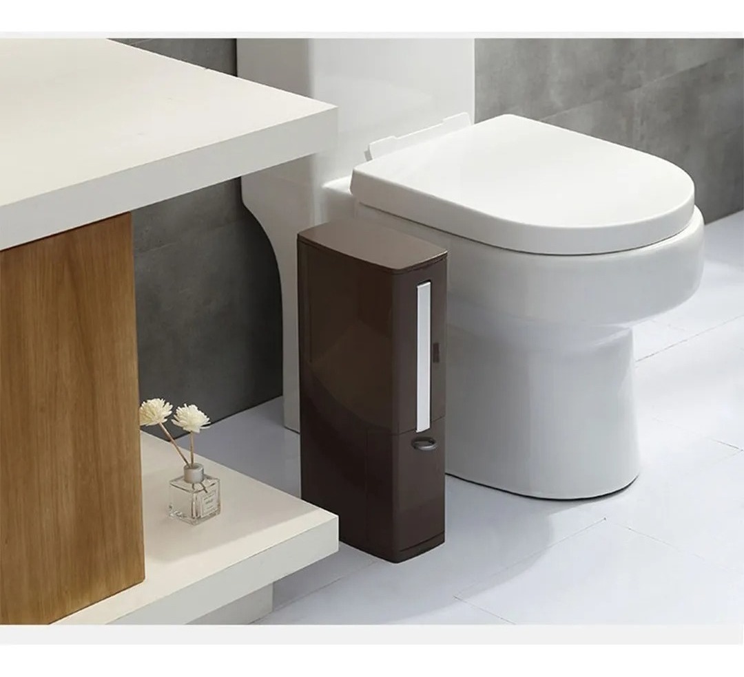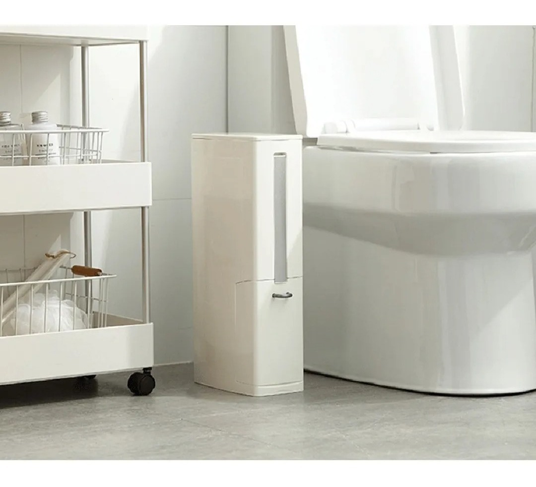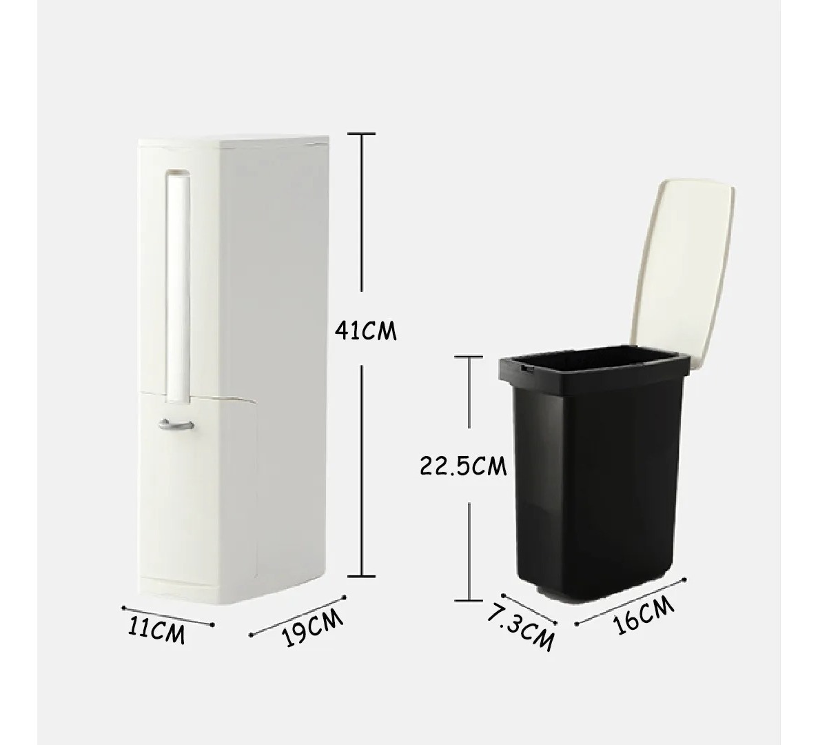 3 en 1 – Cesto de basura para baño ideal para espacios reducidos 6L. – Con cepillo para inodoro – Dispensador de bolsa de basura.
