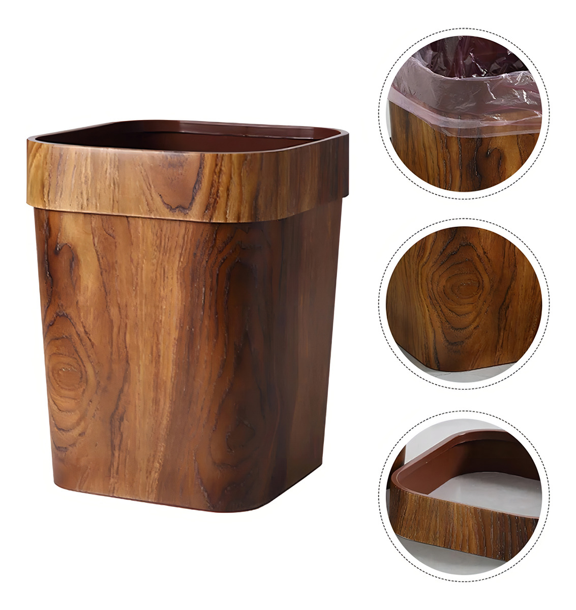 Papelera Cesto Basura Simil Madera Oficina Cocina Baño 12l Color Marrón |