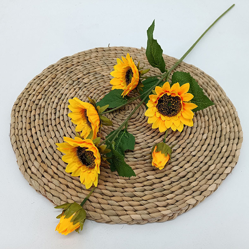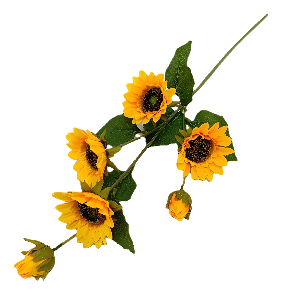Planta Ramo Girasol Artificial 5 Flores 70 Cm Color Amarillo