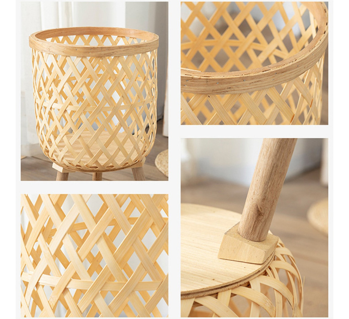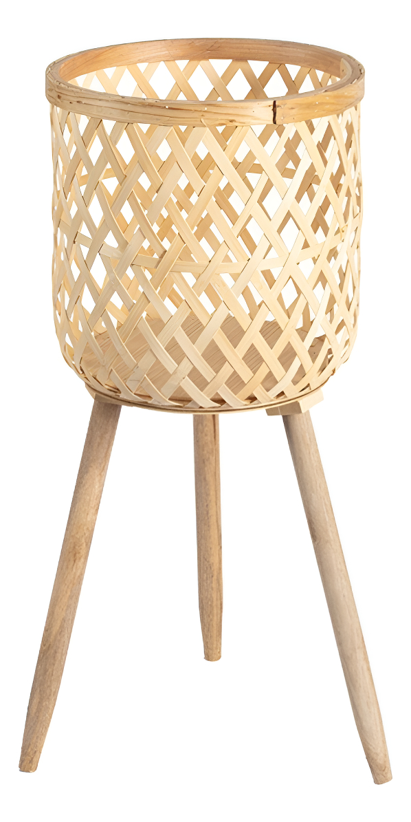 Portamaceta estilo boho en bambú ideal para crear un ambiente ameno y esconder esas feas macetas de toda la vida.