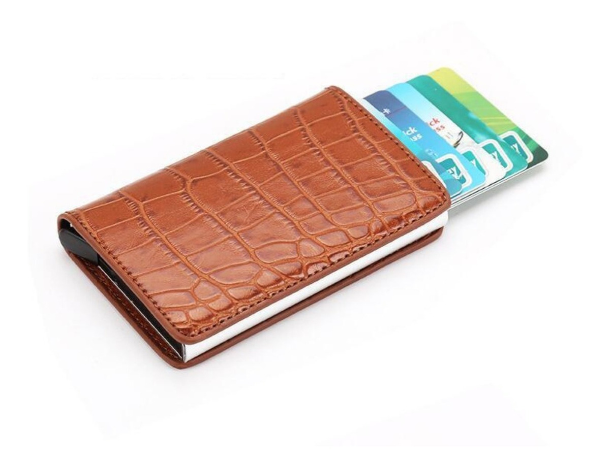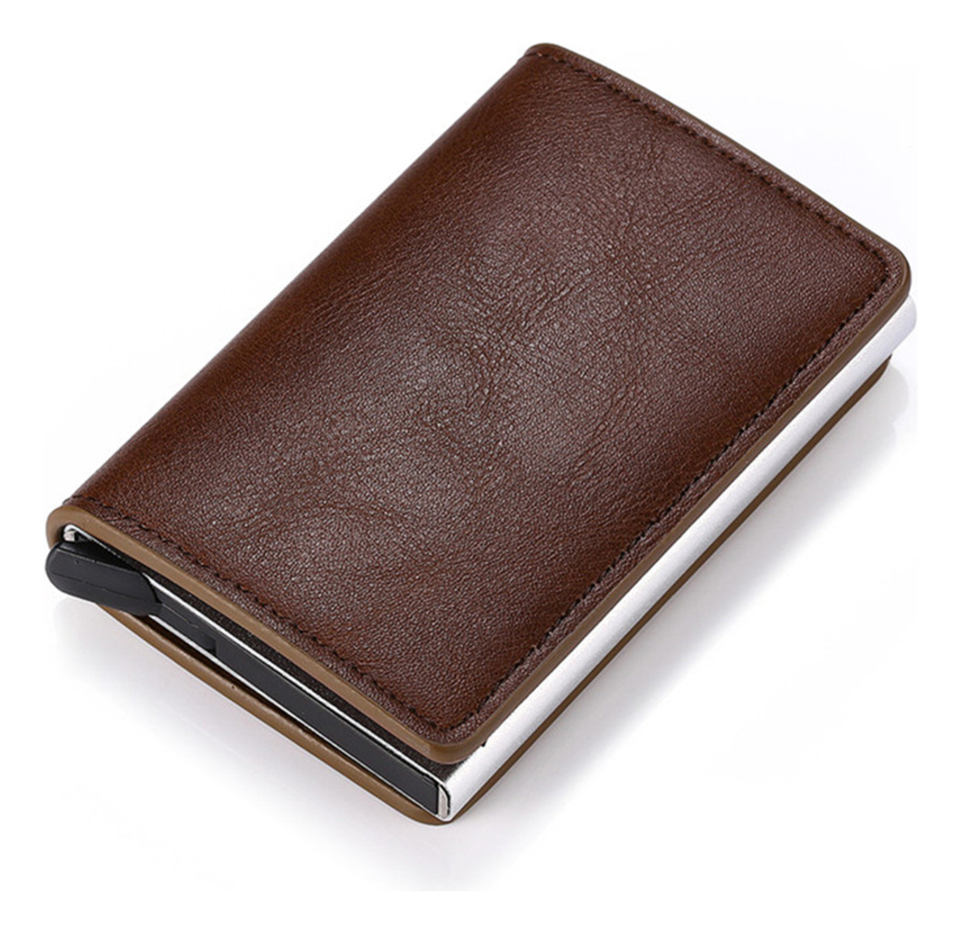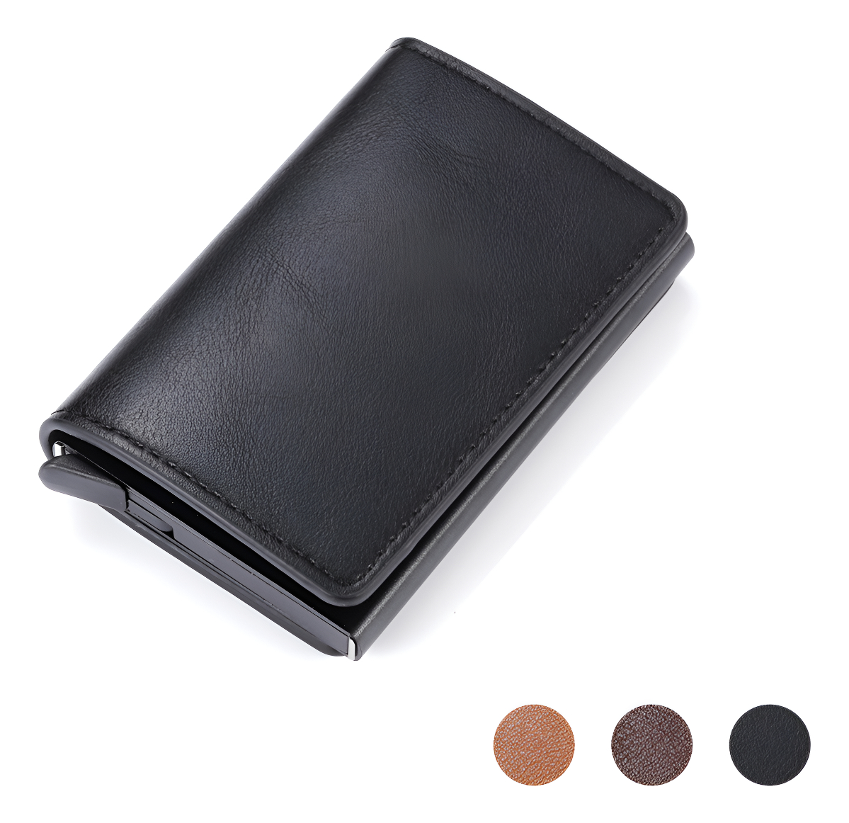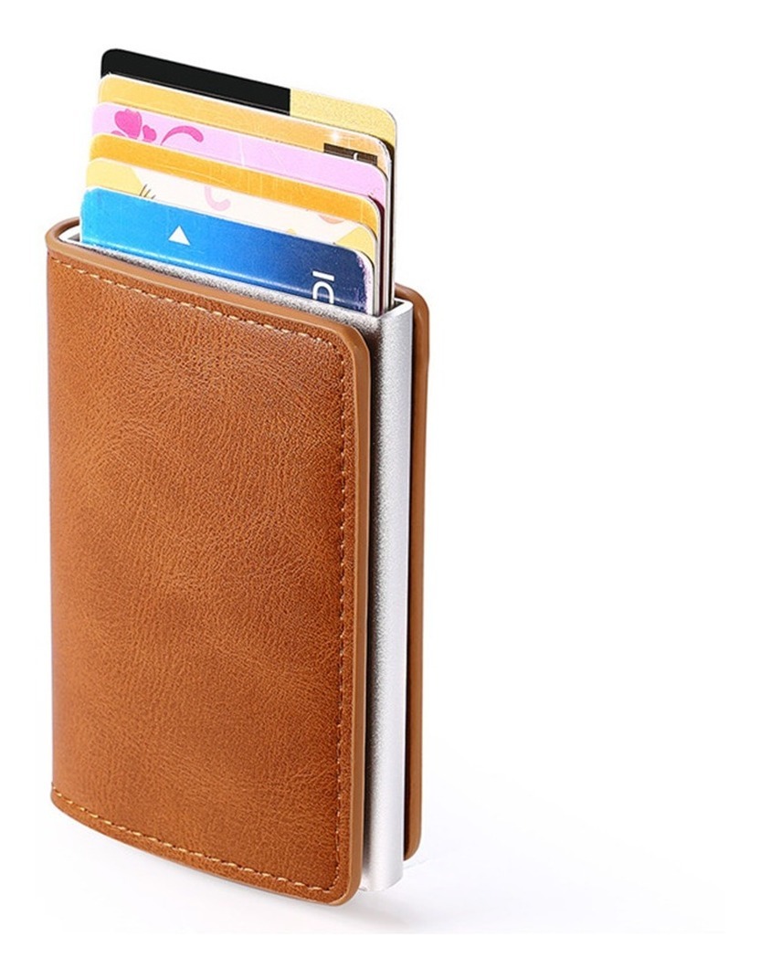 Porta Tarjetas De Metal Rfid Cuero Sintetico