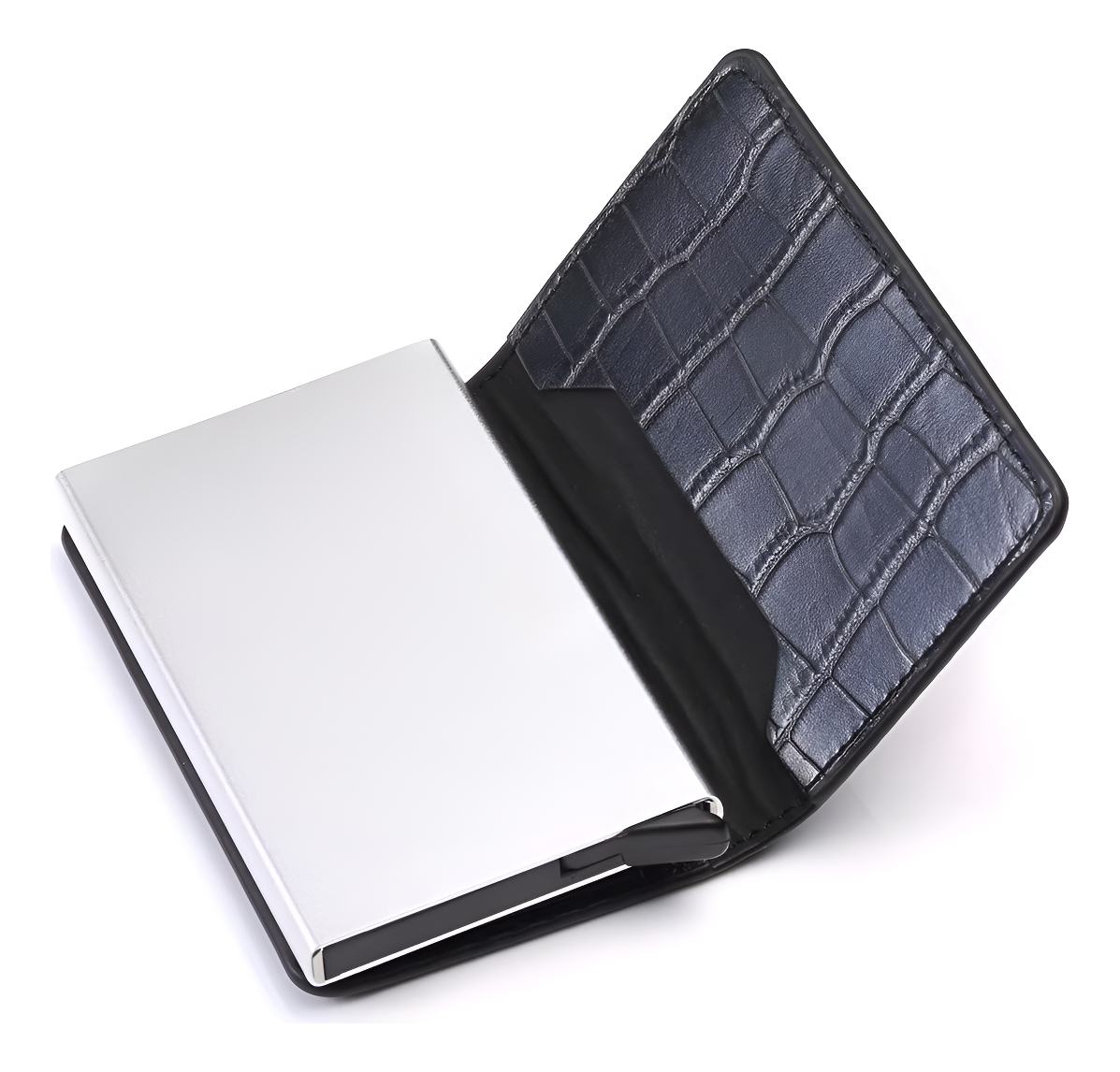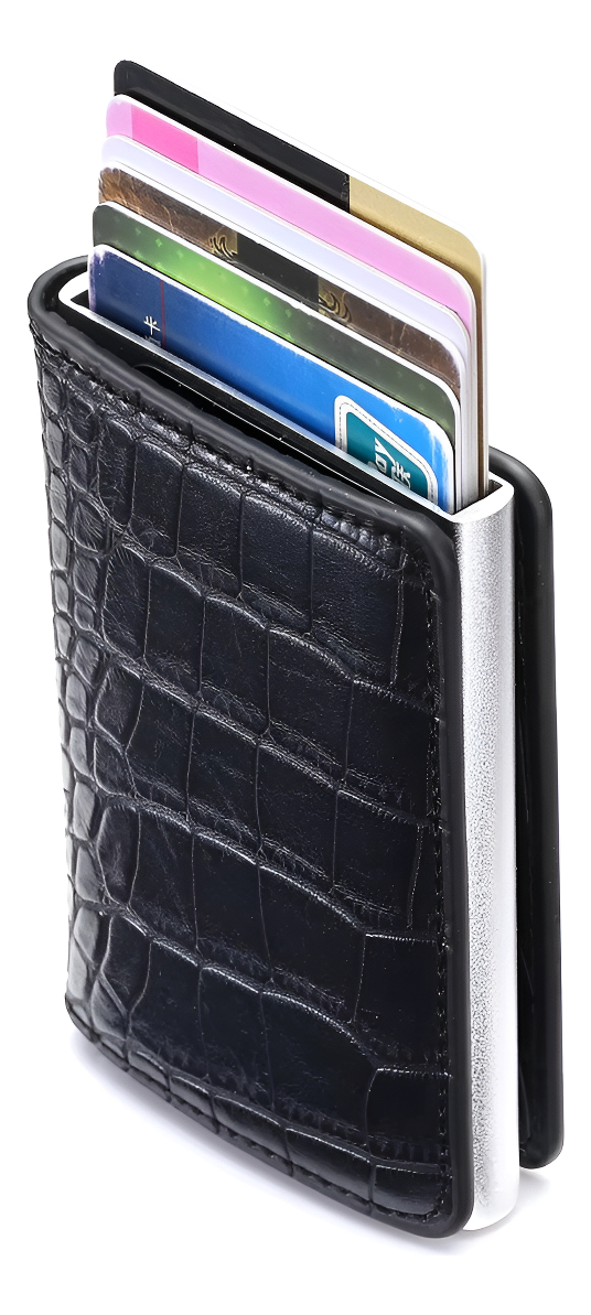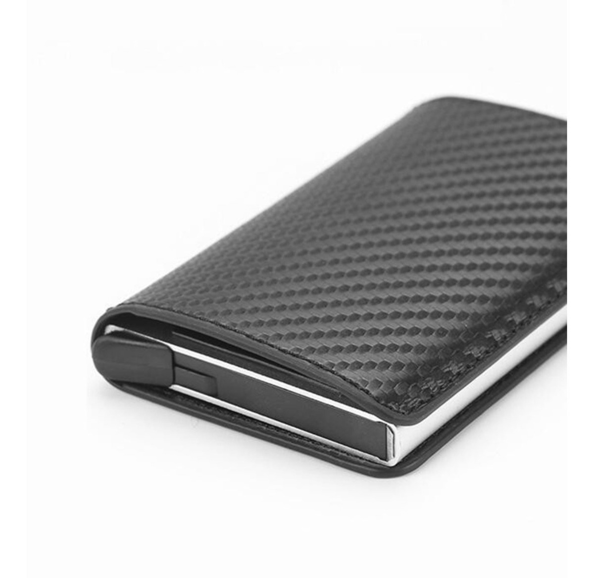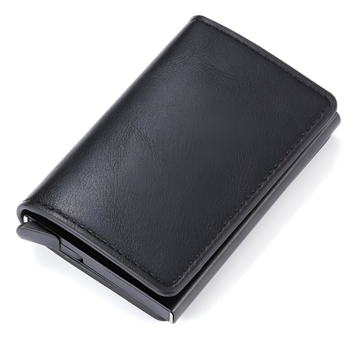 Porta Tarjetas De Metal Rfid Cuero Sintetico