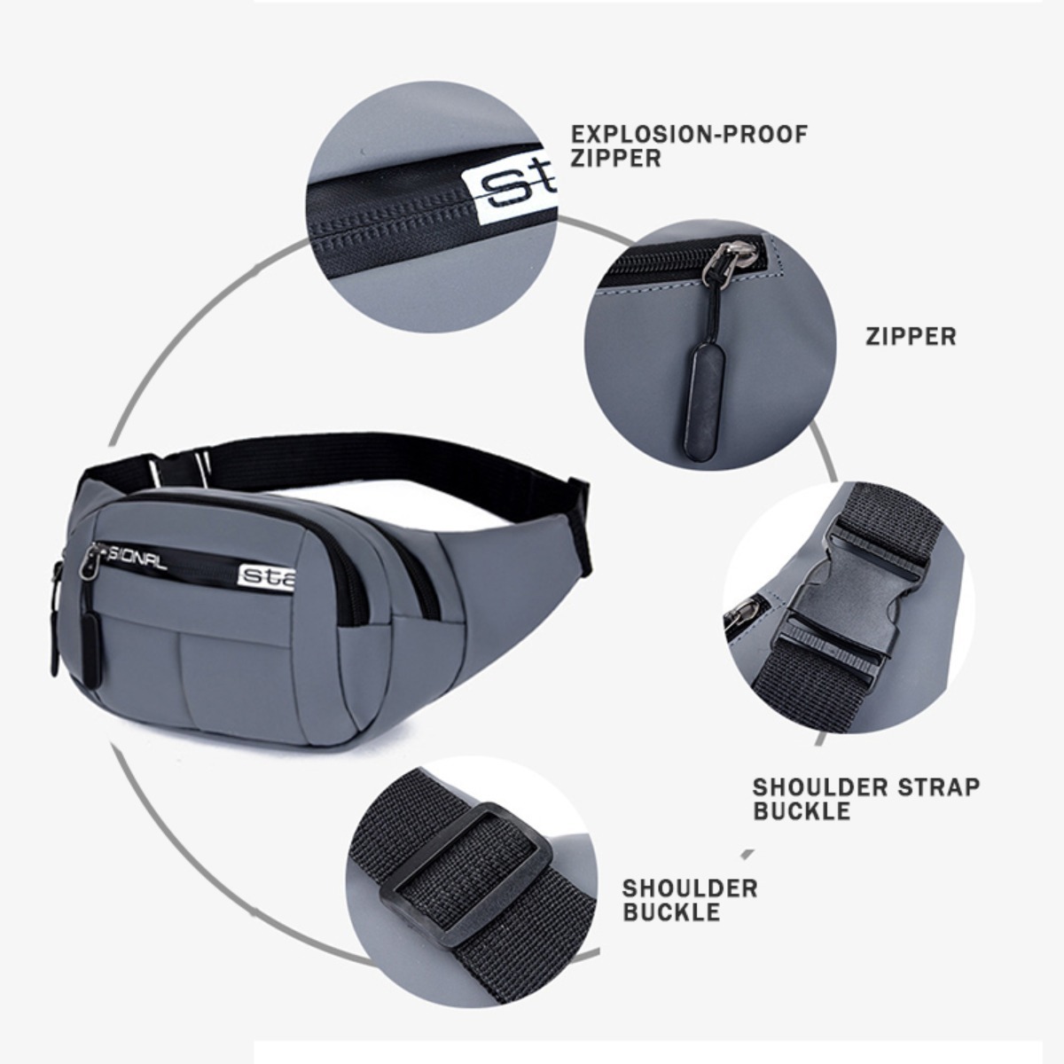 Riñonera de diseño profesional, fabricada en tela Oxford de alta calidad con forro interior. Cuenta con 4 compartimientos exteriores y cierres metálicos resistentes para mayor durabilidad. Su correa ajustable de polipropileno de 70 cm brinda comodidad y se adapta perfectamente. Ideal para actividades al aire libre, viajes o el día a día, combinando funcionalidad y estilo.