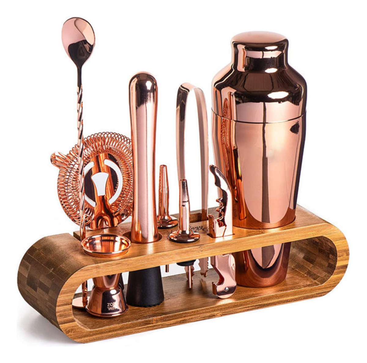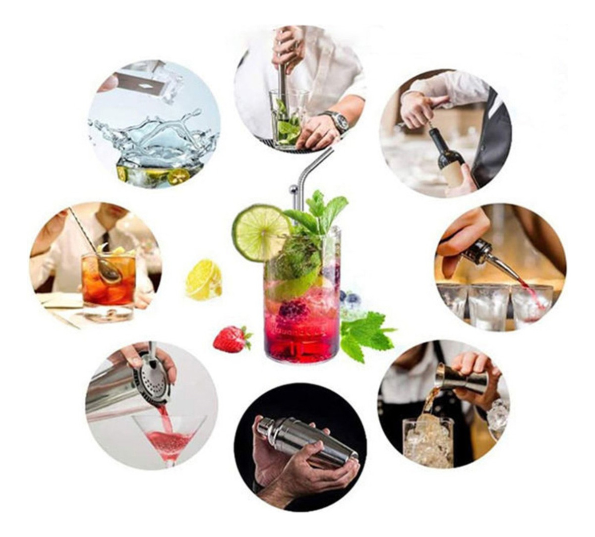 – El mejor kit de coctelera incluye: 1 coctelera grande – 25.4 fl oz – 1 medidor de doble cara – 15/1.0 fl oz (15/1.0 fl oz), 1 colador, 1 vertedor de licor, 1 mortero de cóctel, 1 cuchara de bar, 1 pinzas de hielo, 1 sacacorchos de doble palanca, 1 soporte de bambú.