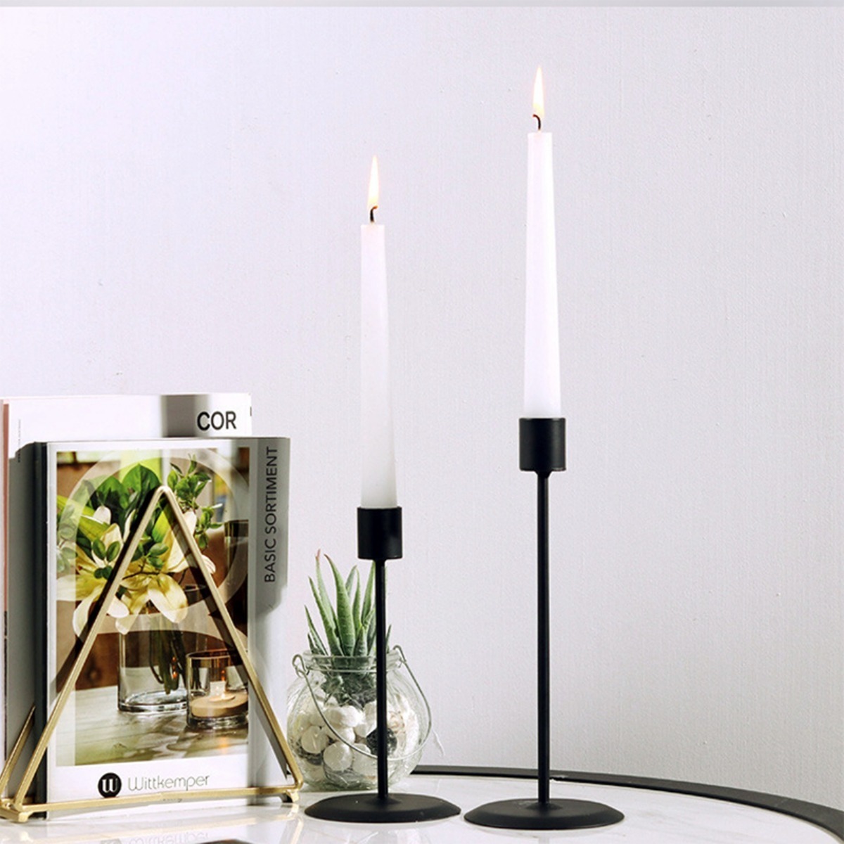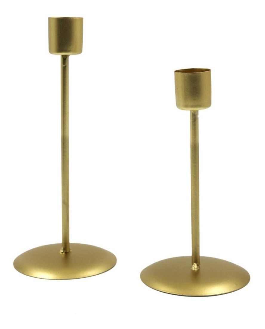Set de 2 portavelas candelabros de hierro, con diseño moderno y minimalista. Incluye dos tamaños diferentes (ver fotos). Perfectos para añadir un toque elegante y contemporáneo a cualquier espacio.